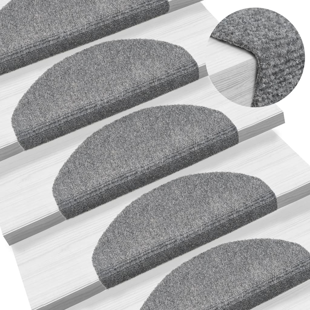 Estes tapetes são feitos num tecido forte agulhado, por isso amortecem o ruído e são antiderrapantes, quentes e confortáveis. Estes tapetes também são laváveis e dobrados para proteger tanto a parte superior como frontal das escadas. Os pontos adesivos na parte de trás permitem que os tapetes sejam presos às escadas de forma fácil e rápida.