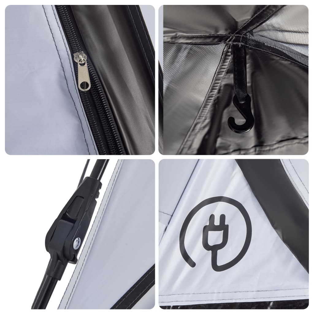 Esta tenda familiar com um aspeto moderno protege-o das intempéries e proporciona um local confortável para aventuras de todo o tipo. Design totalmente à prova de água: esta tenda de campismo, feita de poliéster com revestimento de PU, é à prova de água e resistente ao vento. As costuras coladas evitam eficazmente a infiltração da água da chuva, enquanto a cobertura de chão resistente ajuda a manter o interior seco e confortável.Tecido opaco branco: o tecido da tenda especialmente concebido bloqueia 99% da luz do dia, garantindo um ambiente de dormir mais fresco e confortável. Diga adeus aos distúrbios do sol matinal e desfrute de uma noite de sono repousante.Sistema de libertação rápida: configure a tenda sem esforço com o sistema de libertação rápida! Deite a tenda, estenda os postes pré-montados até que se fixem no devido lugar e está pronta!Boa ventilação e proteção contra mosquitos: as paredes de malha não só oferecem uma excelente ventilação, como também mantêm eficazmente os insetos afastados, garantindo aos utilizadores uma experiência confortável e livre de insetos.Acesso conveniente para cabo elétrico: a porta E permite-lhe ligar facilmente um cabo de extensão de uma fonte de alimentação externa à sua tenda.Leve e portátil: o design dobrável e leve permite-lhe embalar facilmente a tenda e guardá-la no saco de transporte incluído para facilitar o transporte. Atenção:Mantenha todas as chamas e fontes de calor afastadas do tecido deste produto.