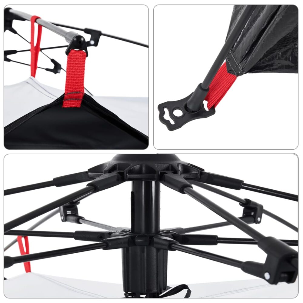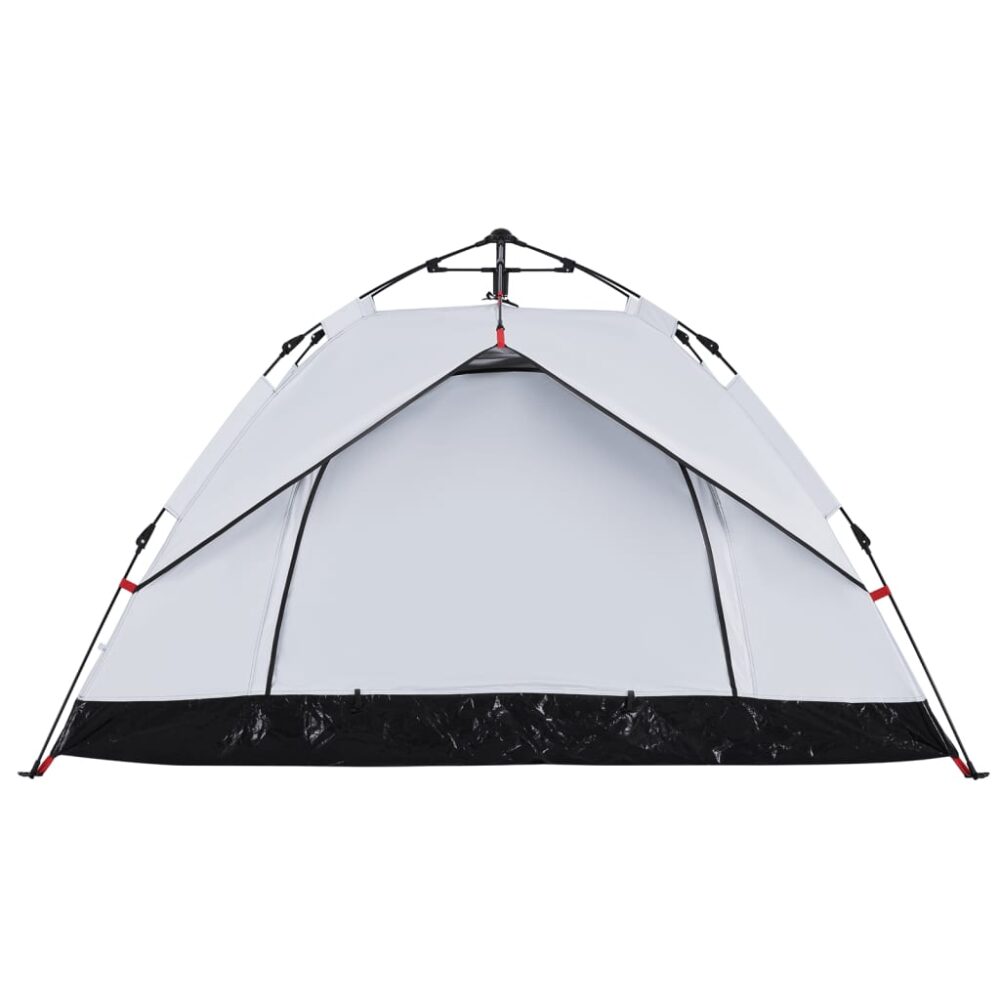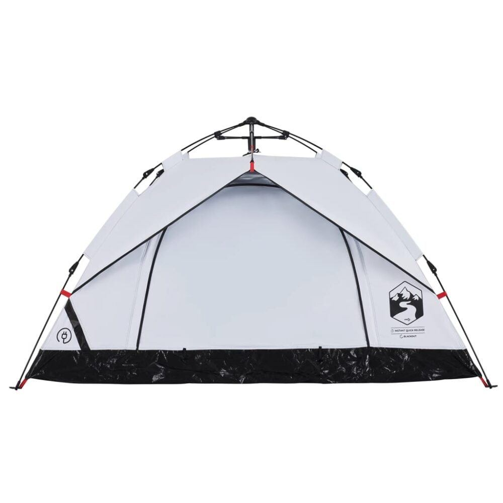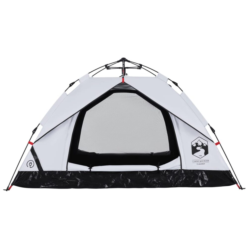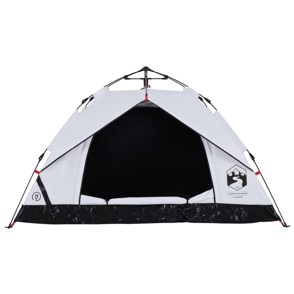 Esta tenda familiar com um aspeto moderno protege-o das intempéries e proporciona um local confortável para aventuras de todo o tipo. Design totalmente à prova de água: esta tenda de campismo, feita de poliéster com revestimento de PU, é à prova de água e resistente ao vento. As costuras coladas evitam eficazmente a infiltração da água da chuva, enquanto a cobertura de chão resistente ajuda a manter o interior seco e confortável.Tecido opaco branco: o tecido da tenda especialmente concebido bloqueia 99% da luz do dia, garantindo um ambiente de dormir mais fresco e confortável. Diga adeus aos distúrbios do sol matinal e desfrute de uma noite de sono repousante.Sistema de libertação rápida: configure a tenda sem esforço com o sistema de libertação rápida! Deite a tenda, estenda os postes pré-montados até que se fixem no devido lugar e está pronta!Boa ventilação e proteção contra mosquitos: as paredes de malha não só oferecem uma excelente ventilação, como também mantêm eficazmente os insetos afastados, garantindo aos utilizadores uma experiência confortável e livre de insetos.Acesso conveniente para cabo elétrico: a porta E permite-lhe ligar facilmente um cabo de extensão de uma fonte de alimentação externa à sua tenda.Leve e portátil: o design dobrável e leve permite-lhe embalar facilmente a tenda e guardá-la no saco de transporte incluído para facilitar o transporte. Atenção:Mantenha todas as chamas e fontes de calor afastadas do tecido deste produto.