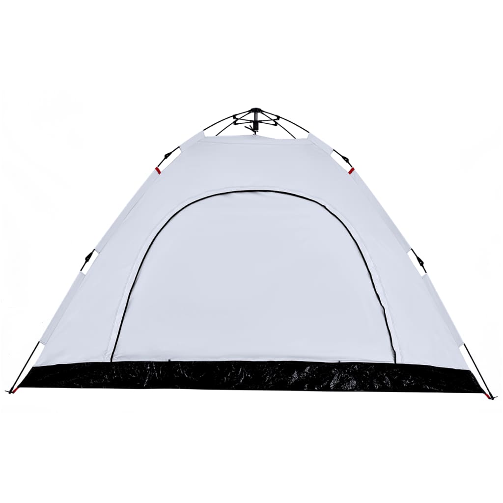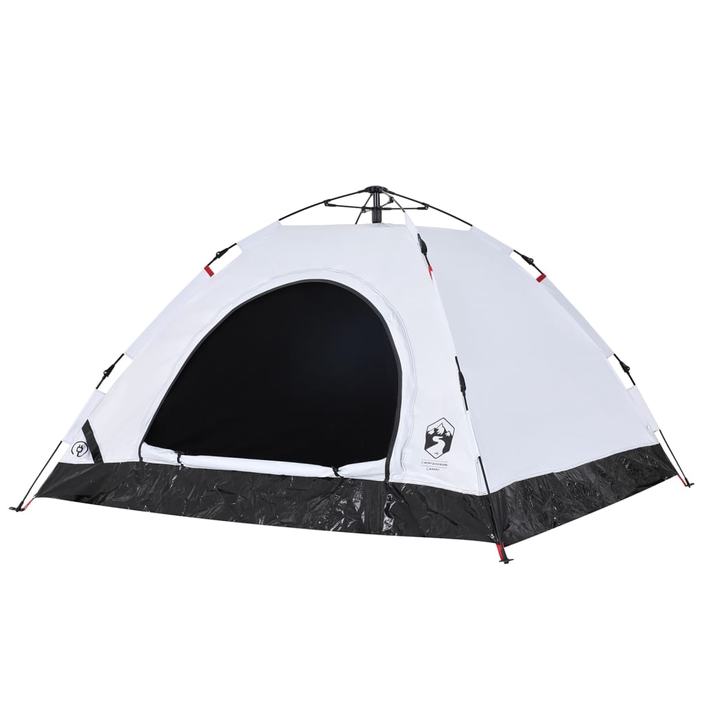 Esta tenda de campismo com aspeto moderno protege-o de intempéries e proporciona um local confortável para aventuras de todo o tipo. Design totalmente à prova de água: esta tenda de campismo, feita de poliéster com revestimento de PU, é à prova de água e resistente ao vento. As costuras coladas evitam eficazmente a infiltração da água da chuva, enquanto a cobertura de chão resistente ajuda a manter o interior seco e confortável.Tecido opaco branco: o tecido da tenda especialmente concebido bloqueia 99% da luz do dia, garantindo um ambiente de dormir mais fresco e confortável. Diga adeus aos distúrbios do sol matinal e desfrute de uma noite de sono repousante.Sistema de libertação rápida: configure a tenda sem esforço com o sistema de libertação rápida! Deite a tenda, estenda os postes pré-montados até que se fixem no devido lugar e está pronta!Acesso fácil: a porta com fecho de correr permite um fácil acesso. Pode enrolá-la e prender com as fitas. Também promove o fluxo de ar e fornece muita luz natural.Acesso conveniente para cabo elétrico: a porta E permite-lhe ligar facilmente um cabo de extensão de uma fonte de alimentação externa à sua tenda.Leve e portátil: o design dobrável e leve permite-lhe embalar facilmente a tenda e guardá-la no saco de transporte incluído para facilitar o transporte. Atenção:Mantenha todas as chamas e fontes de calor afastadas do tecido deste produto.