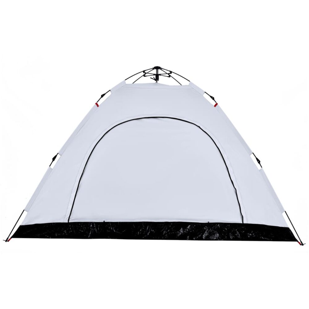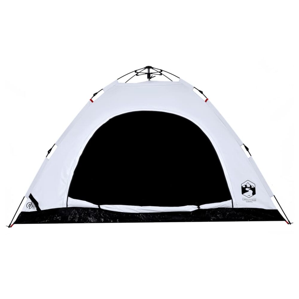 Esta tenda de campismo com aspeto moderno protege-o de intempéries e proporciona um local confortável para aventuras de todo o tipo. Design totalmente à prova de água: esta tenda de campismo, feita de poliéster com revestimento de PU, é à prova de água e resistente ao vento. As costuras coladas evitam eficazmente a infiltração da água da chuva, enquanto a cobertura de chão resistente ajuda a manter o interior seco e confortável.Tecido opaco branco: o tecido da tenda especialmente concebido bloqueia 99% da luz do dia, garantindo um ambiente de dormir mais fresco e confortável. Diga adeus aos distúrbios do sol matinal e desfrute de uma noite de sono repousante.Sistema de libertação rápida: configure a tenda sem esforço com o sistema de libertação rápida! Deite a tenda, estenda os postes pré-montados até que se fixem no devido lugar e está pronta!Acesso fácil: a porta com fecho de correr permite um fácil acesso. Pode enrolá-la e prender com as fitas. Também promove o fluxo de ar e fornece muita luz natural.Acesso conveniente para cabo elétrico: a porta E permite-lhe ligar facilmente um cabo de extensão de uma fonte de alimentação externa à sua tenda.Leve e portátil: o design dobrável e leve permite-lhe embalar facilmente a tenda e guardá-la no saco de transporte incluído para facilitar o transporte. Atenção:Mantenha todas as chamas e fontes de calor afastadas do tecido deste produto.
