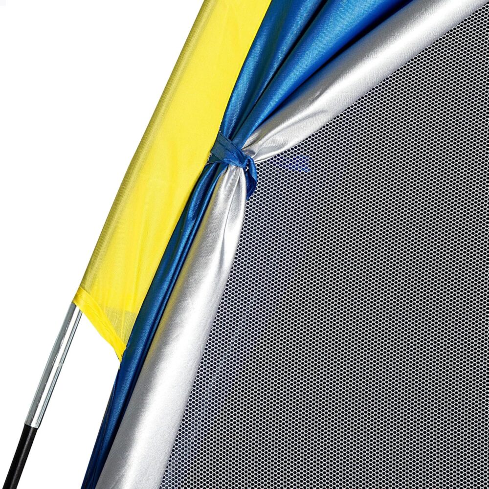- Fácil montagem com hastes e estrutura autoportante, com teto duplo que favorece a ventilação