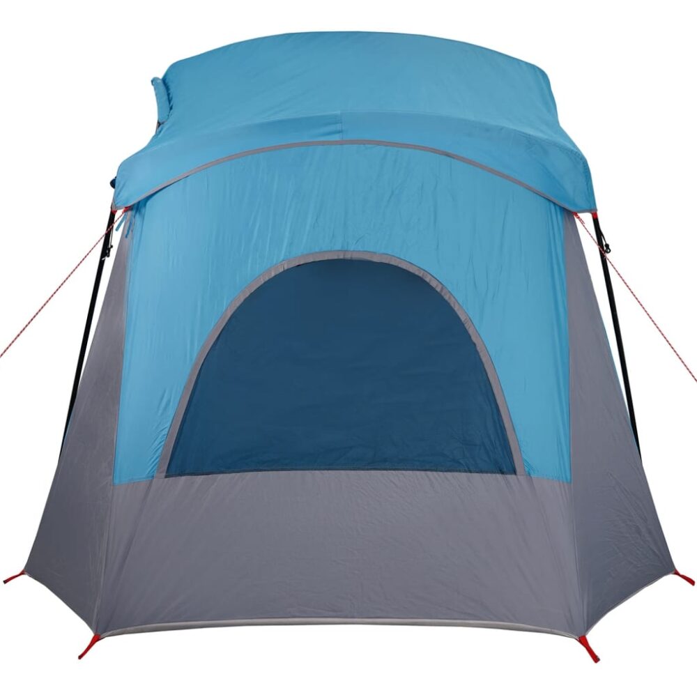 Esta tenda de campismo com aspeto moderno protege-o de intempéries e proporciona um local confortável para aventuras de todo o tipo. Design totalmente à prova de água: esta tenda de campismo, feita de poliéster com revestimento de PU, é à prova de água e resistente ao vento. As costuras coladas evitam eficazmente a infiltração da água da chuva, enquanto a cobertura de chão resistente ajuda a manter o interior seco e confortável. Fácil montagem e desmontagem: montar e desmontar a tenda é muito fácil graças aos postes de fibra de vidro altamente flexíveis e leves e ao conveniente sistema de conexão por pinos e anéis. Acesso fácil: a porta com fecho de correr permite um fácil acesso. Pode enrolá-la e prender com as fitas. Também promove o fluxo de ar e fornece muita luz natural. Acesso conveniente para cabo elétrico: a porta E permite-lhe ligar facilmente um cabo de extensão de uma fonte de alimentação externa à sua tenda. Leve e portátil: o design dobrável e leve permite-lhe embalar facilmente a tenda e guardá-la no saco de transporte incluído para facilitar o transporte. Atenção:Mantenha todas as chamas e fontes de calor afastadas do tecido deste produto.