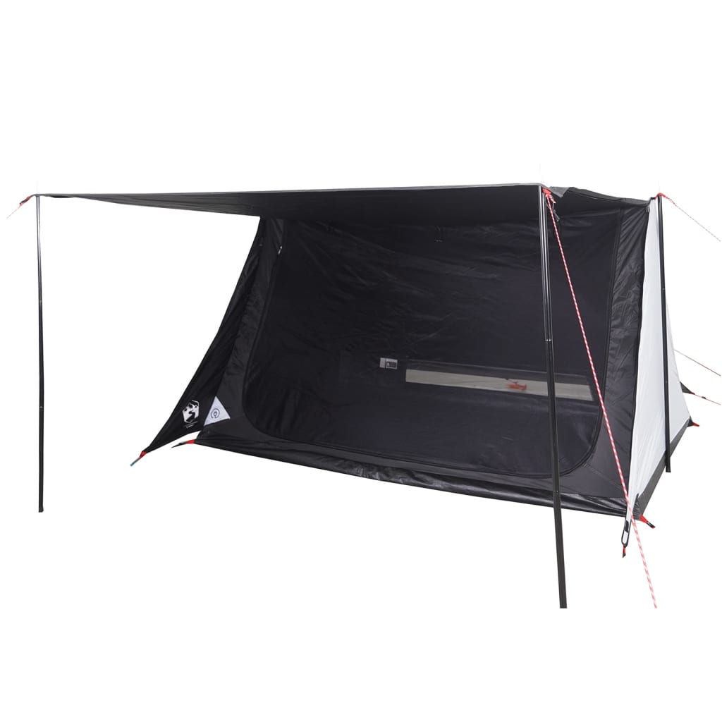 Esta tenda de campismo com aspeto moderno protege-o de intempéries e proporciona um local confortável para aventuras de todo o tipo. Design totalmente à prova de água: esta tenda de campismo, feita de poliéster com revestimento de PU, é à prova de água e resistente ao vento. As costuras coladas evitam eficazmente a infiltração da água da chuva, enquanto a cobertura de chão resistente ajuda a manter o interior seco e confortável.Tecido opaco branco: o tecido da tenda especialmente concebido bloqueia 99% da luz do dia, garantindo um ambiente de dormir mais fresco e confortável. Diga adeus aos distúrbios do sol matinal e desfrute de uma noite de sono repousante.Postes incluídos para o toldo à prova de sol: esta tenda de campismo inclui postes que facilitam a sustentação da porta de entrada, criando um toldo à prova de sol. Agora pode desfrutar do ar livre mantendo-se à sombra!Design de porta dupla: a porta de malha permite uma ótima ventilação e mantém os insetos do lado de fora, enquanto a porta impermeável oferece proteção contra vento e chuva.Acesso conveniente para cabo elétrico: a porta E permite-lhe ligar facilmente um cabo de extensão de uma fonte de alimentação externa à sua tenda.Fácil montagem e desmontagem: montar e desmontar a tenda é muito fácil graças aos postes de fibra de vidro altamente flexíveis e leves e ao conveniente sistema de conexão por pinos e anéis. Atenção:Mantenha todas as chamas e fontes de calor afastadas do tecido deste produto.