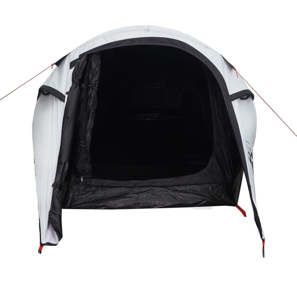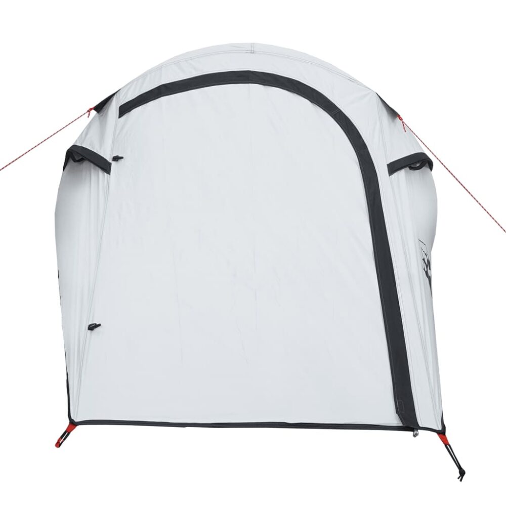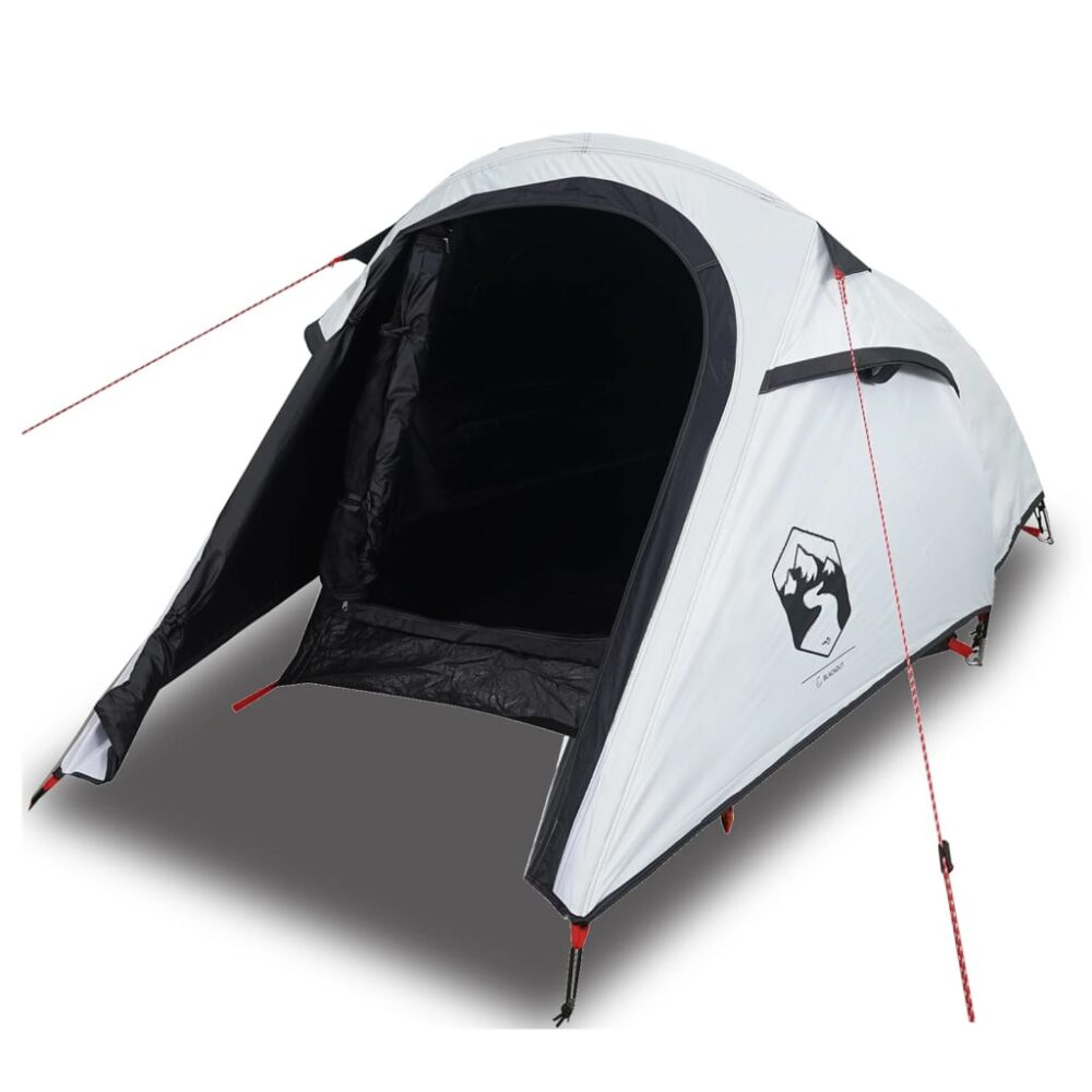 Esta tenda de campismo com aspeto moderno protege-o de intempéries e proporciona um local confortável para aventuras de todo o tipo. Design totalmente à prova de água: esta tenda de campismo, feita de poliéster com revestimento de PU, é à prova de água e resistente ao vento. As costuras coladas evitam eficazmente a infiltração da água da chuva, enquanto a cobertura de chão resistente ajuda a manter o interior seco e confortável.Tecido opaco branco: o tecido da tenda especialmente concebido bloqueia 99% da luz do dia, garantindo um ambiente de dormir mais fresco e confortável. Diga adeus aos distúrbios do sol matinal e desfrute de uma noite de sono repousante.Fácil montagem e desmontagem: montar e desmontar a tenda é muito fácil graças aos postes de fibra de vidro altamente flexíveis e leves e ao conveniente sistema de conexão por pinos e anéis.Cobertura impermeável removível: a cobertura impermeável removível pode ser anexada ao topo da tenda para proteção contra intempéries e privacidade.Boa ventilação e proteção contra mosquitos: as paredes de malha não só oferecem uma excelente ventilação, como também mantêm eficazmente os insetos afastados, garantindo aos utilizadores uma experiência confortável e livre de insetos.Acesso fácil: a porta com fecho de correr permite um fácil acesso. Pode enrolá-la e prender com as fitas. Também promove o fluxo de ar e fornece muita luz natural. Atenção:Mantenha todas as chamas e fontes de calor afastadas do tecido deste produto.