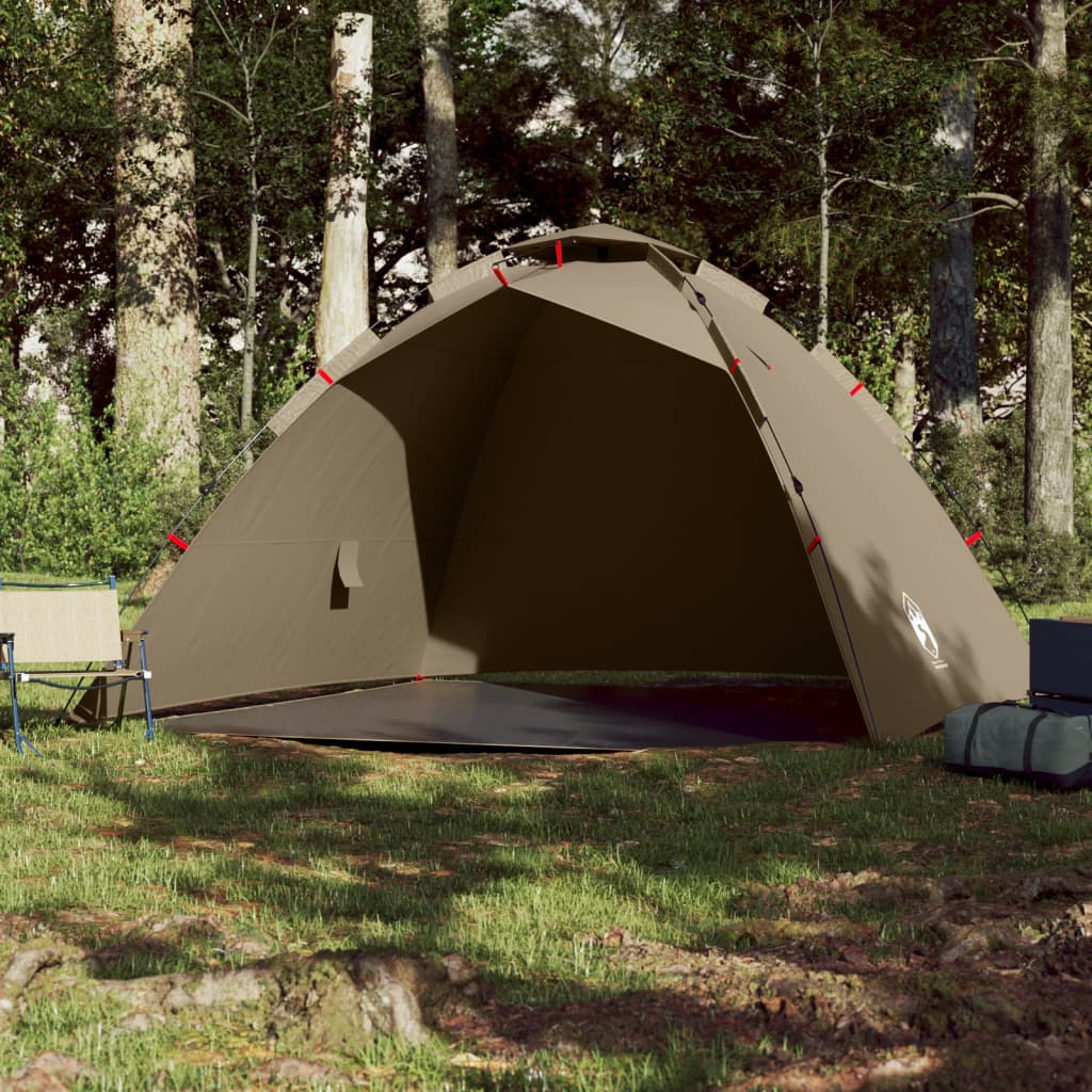 Esta tenda de pesca é perfeita para criar alguma sombra e proteção contra os nocivos raios UV do sol enquanto estiver a pescar. Design totalmente à prova de água: esta tenda de campismo, feita de poliéster com revestimento de PU, é à prova de água e resistente ao vento. As costuras coladas evitam eficazmente a infiltração da água da chuva, enquanto a cobertura de chão resistente ajuda a manter o interior seco e confortável.Sistema de libertação rápida: configure a tenda sem esforço com o sistema de libertação rápida! Deite a tenda, estenda os postes pré-montados até que se fixem no devido lugar e está pronta!Porta aberta: a porta totalmente aberta permite-lhe desfrutar da bonita paisagem da praia com a sua família ou entreter as crianças livremente numa deliciosa tarde de verão.Leve e portátil: o design dobrável e leve permite-lhe embalar facilmente a tenda e guardá-la no saco de transporte incluído para facilitar o transporte.Estável e segura: fixe a sua tenda firmemente ao chão com as estacas e cordas guia fornecidas para garantir estabilidade e segurança. Atenção:Mantenha todas as chamas e fontes de calor afastadas do tecido deste produto.