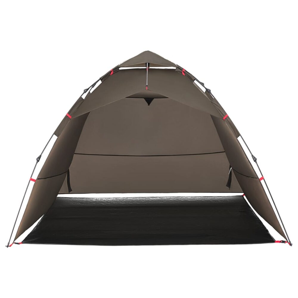 Esta tenda de pesca é perfeita para criar alguma sombra e proteção contra os nocivos raios UV do sol enquanto estiver a pescar. Design totalmente à prova de água: esta tenda de campismo, feita de poliéster com revestimento de PU, é à prova de água e resistente ao vento. As costuras coladas evitam eficazmente a infiltração da água da chuva, enquanto a cobertura de chão resistente ajuda a manter o interior seco e confortável.Sistema de libertação rápida: configure a tenda sem esforço com o sistema de libertação rápida! Deite a tenda, estenda os postes pré-montados até que se fixem no devido lugar e está pronta!Porta aberta: a porta totalmente aberta permite-lhe desfrutar da bonita paisagem da praia com a sua família ou entreter as crianças livremente numa deliciosa tarde de verão.Leve e portátil: o design dobrável e leve permite-lhe embalar facilmente a tenda e guardá-la no saco de transporte incluído para facilitar o transporte.Estável e segura: fixe a sua tenda firmemente ao chão com as estacas e cordas guia fornecidas para garantir estabilidade e segurança. Atenção:Mantenha todas as chamas e fontes de calor afastadas do tecido deste produto.