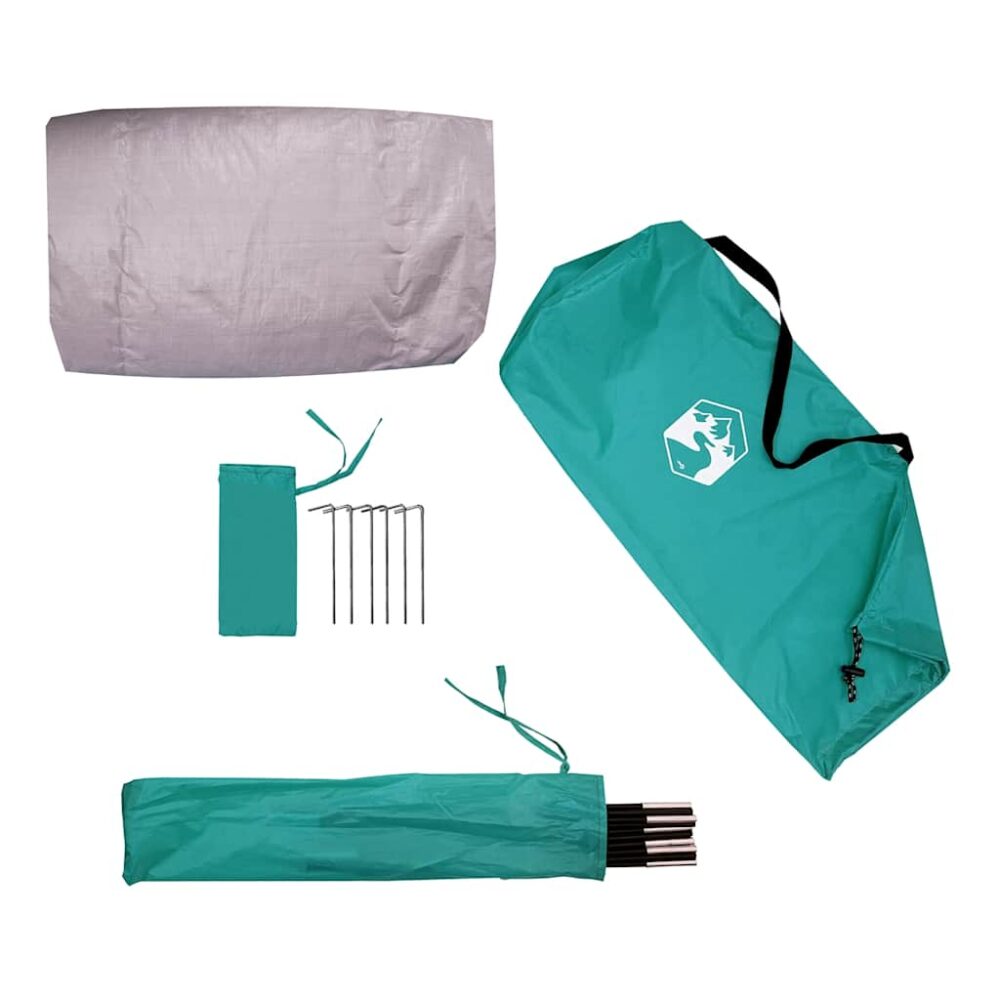 Fácil montagem e desmontagem: montar e desmontar a tenda é muito fácil graças aos postes de fibra de vidro altamente flexíveis e leves e ao conveniente sistema de conexão por pinos e anéis.