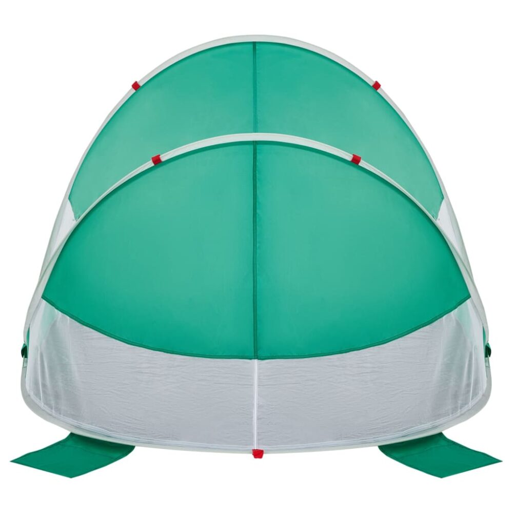 Esta tenda de praia proporciona-lhe a si e aos seus amigos um abrigo acolhedor no verão quente. Pode ainda usá-la como sombra de caixa de areia ou piscina infantil. Impermeável: esta tenda de campismo, feita de poliéster com revestimento de PU, é à prova de água e resistente ao vento.Design pop-up: graças ao design pop-up, pode facilmente montar e dobrar a tenda em segundos. Basta tirá-la do saco, atirá-la ao chão e vê-la montada automaticamente.Porta aberta: a porta totalmente aberta permite-lhe desfrutar da bonita paisagem da praia com a sua família ou entreter as crianças livremente numa deliciosa tarde de verão.Leve e portátil: o design dobrável e leve permite-lhe embalar facilmente a tenda e guardá-la no saco de transporte incluído para facilitar o transporte.Estável e segura: fixe a sua tenda firmemente ao chão com as estacas e cordas guia fornecidas para garantir estabilidade e segurança. Atenção:Mantenha todas as chamas e fontes de calor afastadas do tecido deste produto.