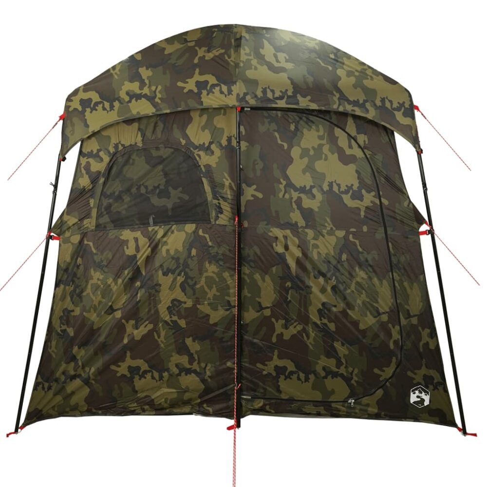 Esta tenda de duche é excelente para criar uma área isolada para uma casa de banho, chuveiro ou vestiário no campismo. Impermeável: esta tenda de campismo, feita de poliéster com revestimento de PU, é à prova de água e resistente ao vento.Tenda multifuncional: a tenda proporciona um local privado para utilizar a sanita e para tomar um banho rápido enquanto está a acampar. Serve também como vestiário para atividades ao ar livre, tais como modelagem, competições de dança e venda de roupas.Cobertura impermeável removível: a cobertura impermeável removível pode ser anexada ao topo da tenda para proteção contra intempéries e privacidade.Fácil montagem e desmontagem: montar e desmontar a tenda é muito fácil graças aos postes de fibra de vidro altamente flexíveis e leves e ao conveniente sistema de conexão por pinos e anéis.Leve e portátil: o design dobrável e leve permite-lhe embalar facilmente a tenda e guardá-la no saco de transporte incluído para facilitar o transporte. Atenção:Mantenha todas as chamas e fontes de calor afastadas do tecido deste produto.