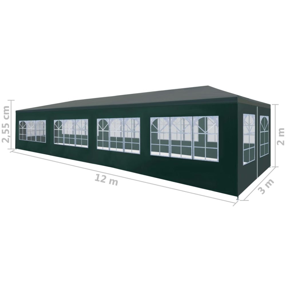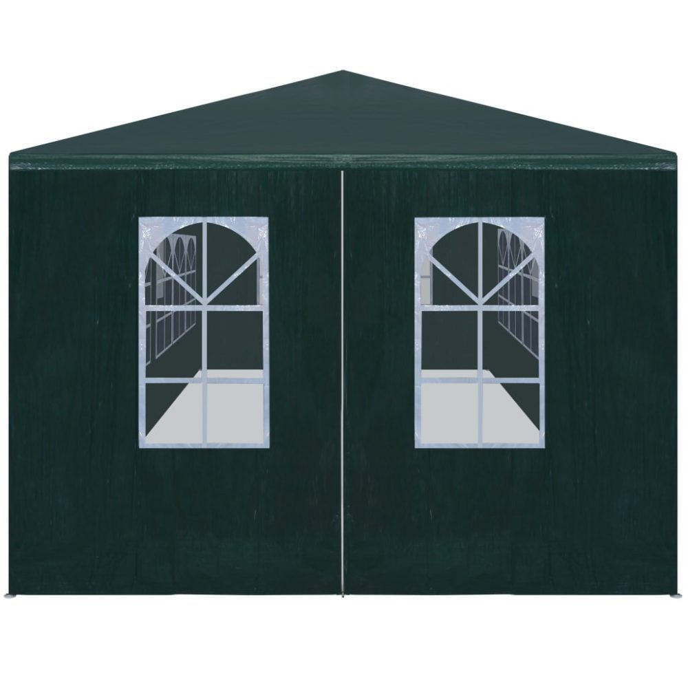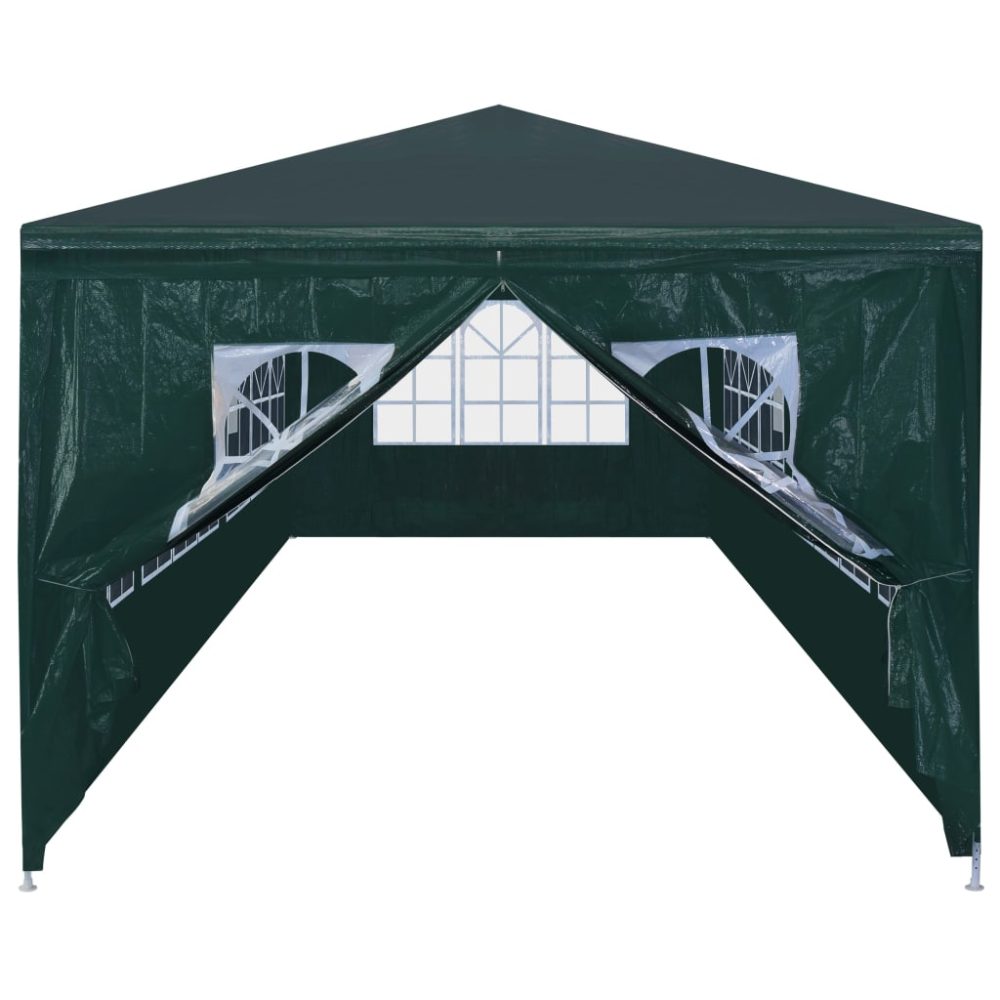 A tenda de jardim é feita em polietileno, que é resistente aos raios UV e à água, sendo portanto muito prática para utilização ao ar livre. A estrutura é fabricada em aço resistente à ferrugem, tornando o toldo exterior estável e durável. A tenda para festas possui painéis laterais, cada um com janelas decorativas, e um painel de porta com um fecho de correr para facilitar a entrada. O gazebo de jardim é fácil de montar.