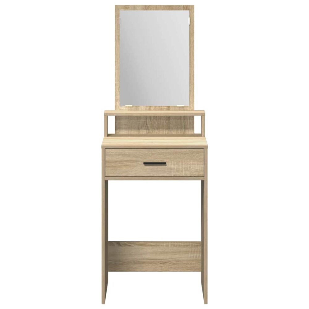Esta Mesa de Toucador Contempornea em Carvalho Sonoma um toque elegante para quem aprecia estilo e funcionalidade. Ideal para quartos, mede 50 x 41 x 140 cm, adequando-se bem a espaos menores, alargando o armazenamento e mantendo um visual estiloso. O acabamento fosco combina perfeitamente com qualquer decorao. Quer o quarto seja um refgio tranquilo ou um local moderno, a mesa de toucador encaixa-se de forma excelente. O espelho e a gaveta espaosa tornam os cuidados dirios mais prticas e agradveis. Acrescentar este mvel ao quarto transforma o espao num refgio organizado e elegante.
