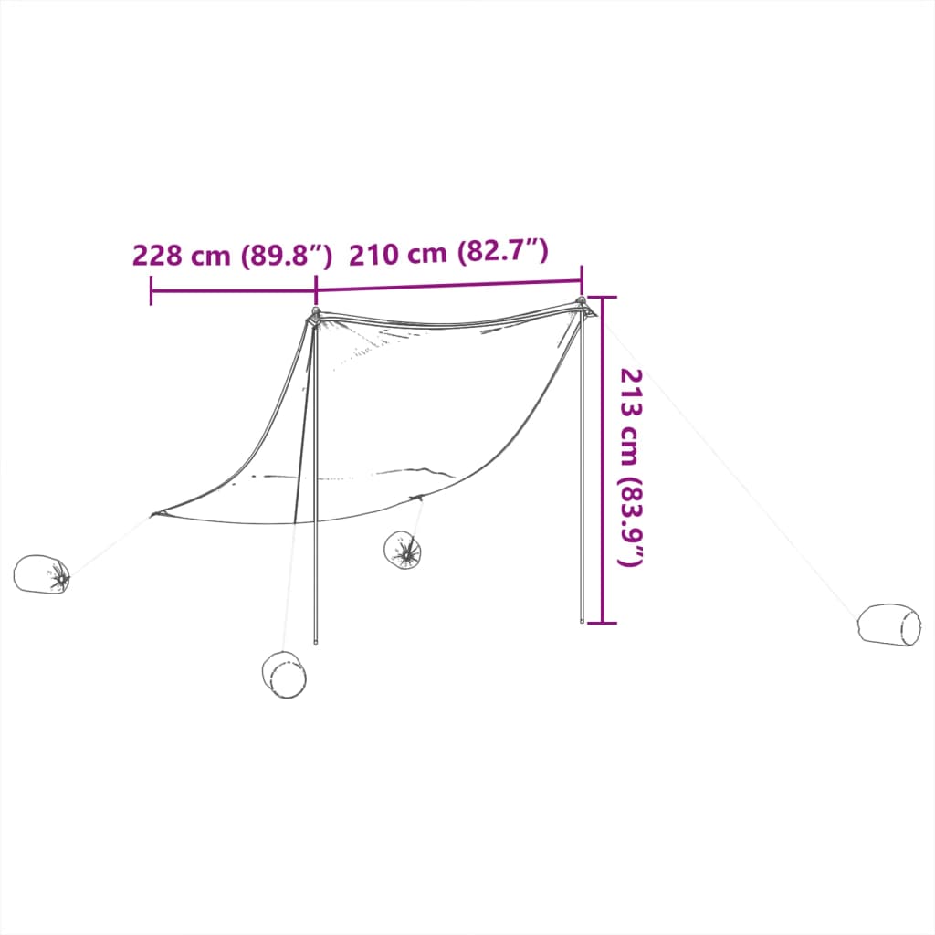 Toldo de praia com âncoras de areia 214x236 cm cinzento