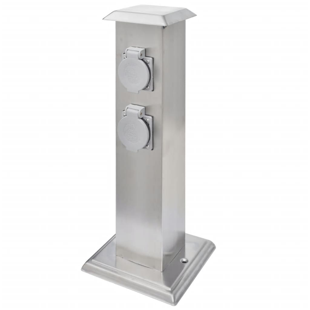 - Material: carcaça de aço inoxidável + tomadas de plástico