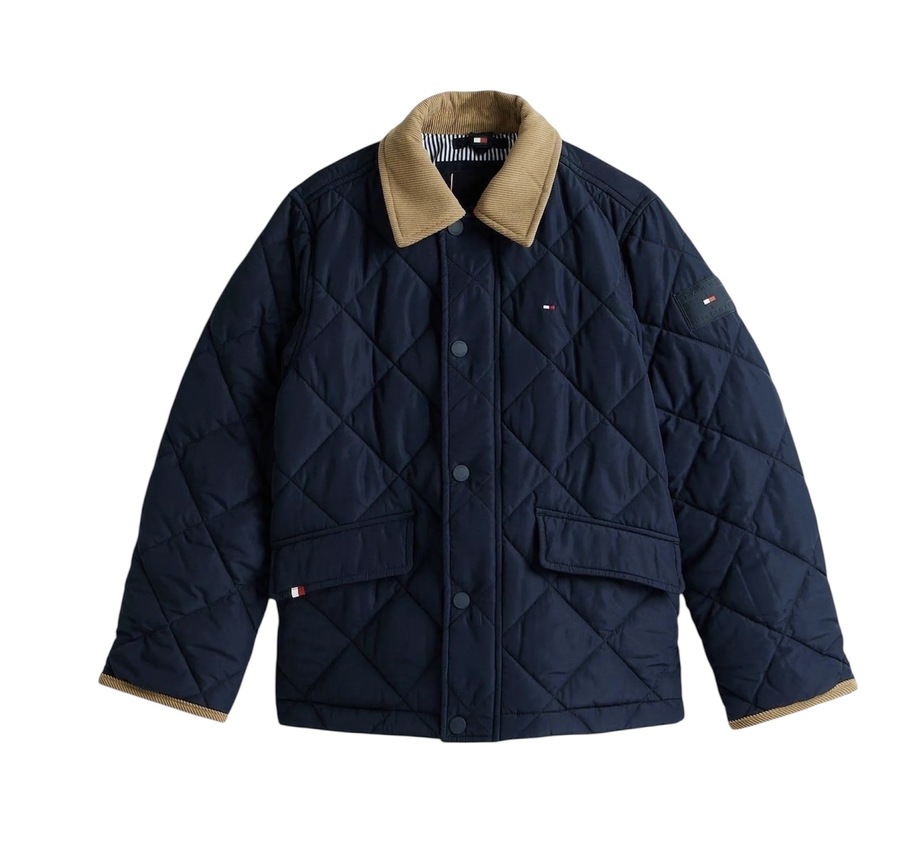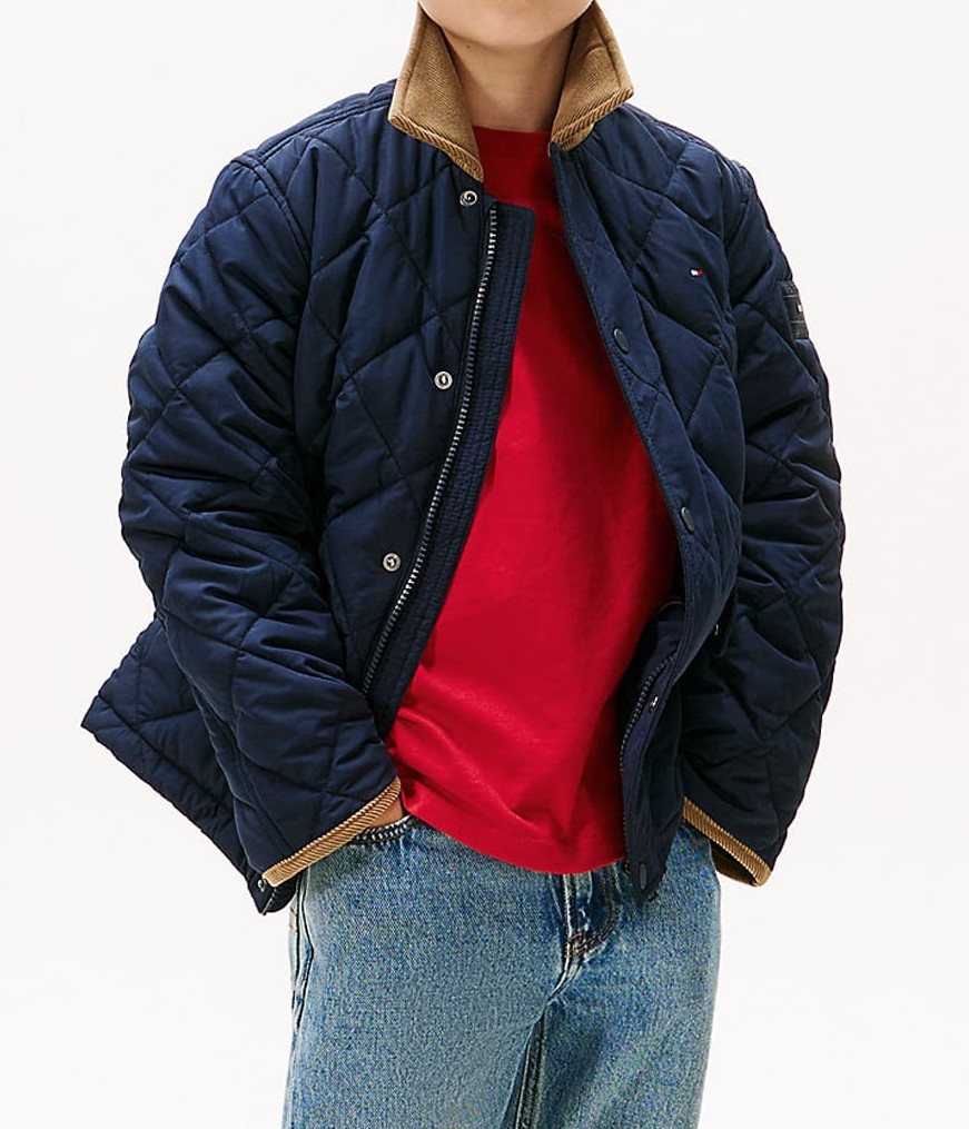 Jaqueta de manga comprida com zíper, botões, bolsos, detalhes contrastantes, bordado e logotipo