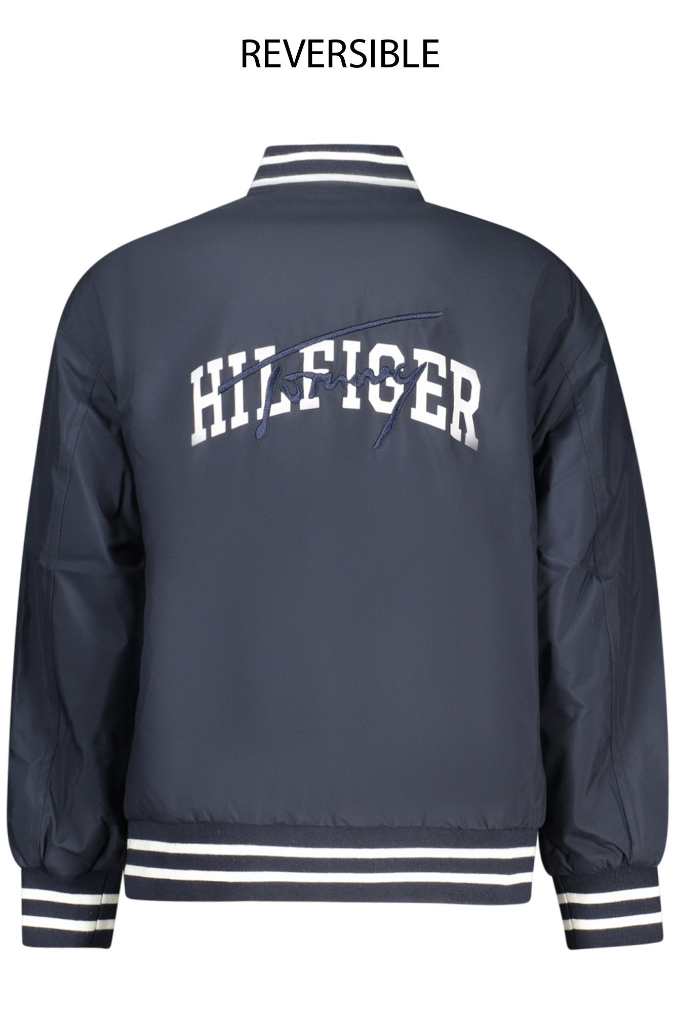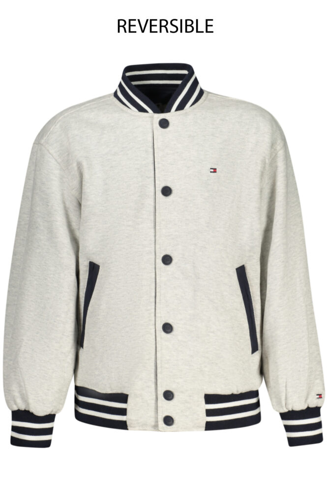 Jaqueta reversível de manga comprida confeccionada em 100% poliéster, com 50% de poliéster reciclado, unindo estilo, versatilidade e consciência ambiental.