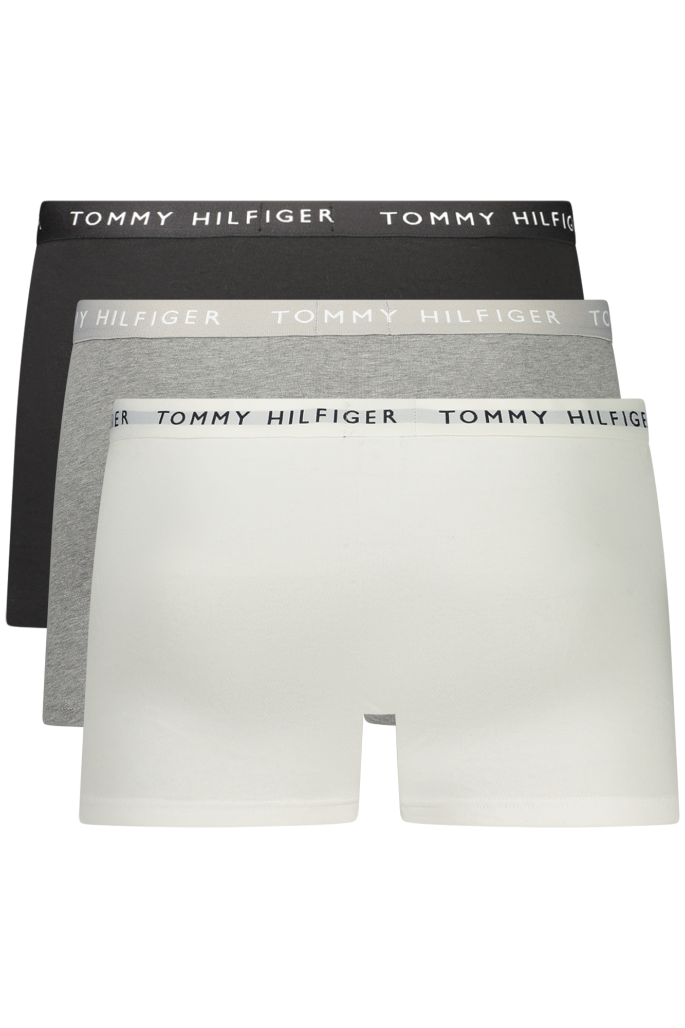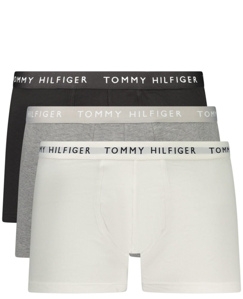 Cuecas boxer em pacote de 3 unidades, em cores diferentes preto, cinza e branco, ideais para o uso diário.