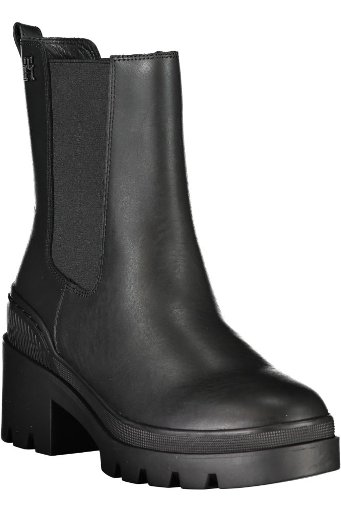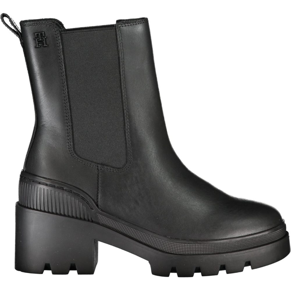 Bota com elástico lateral, salto de 6 cm e logótipo.