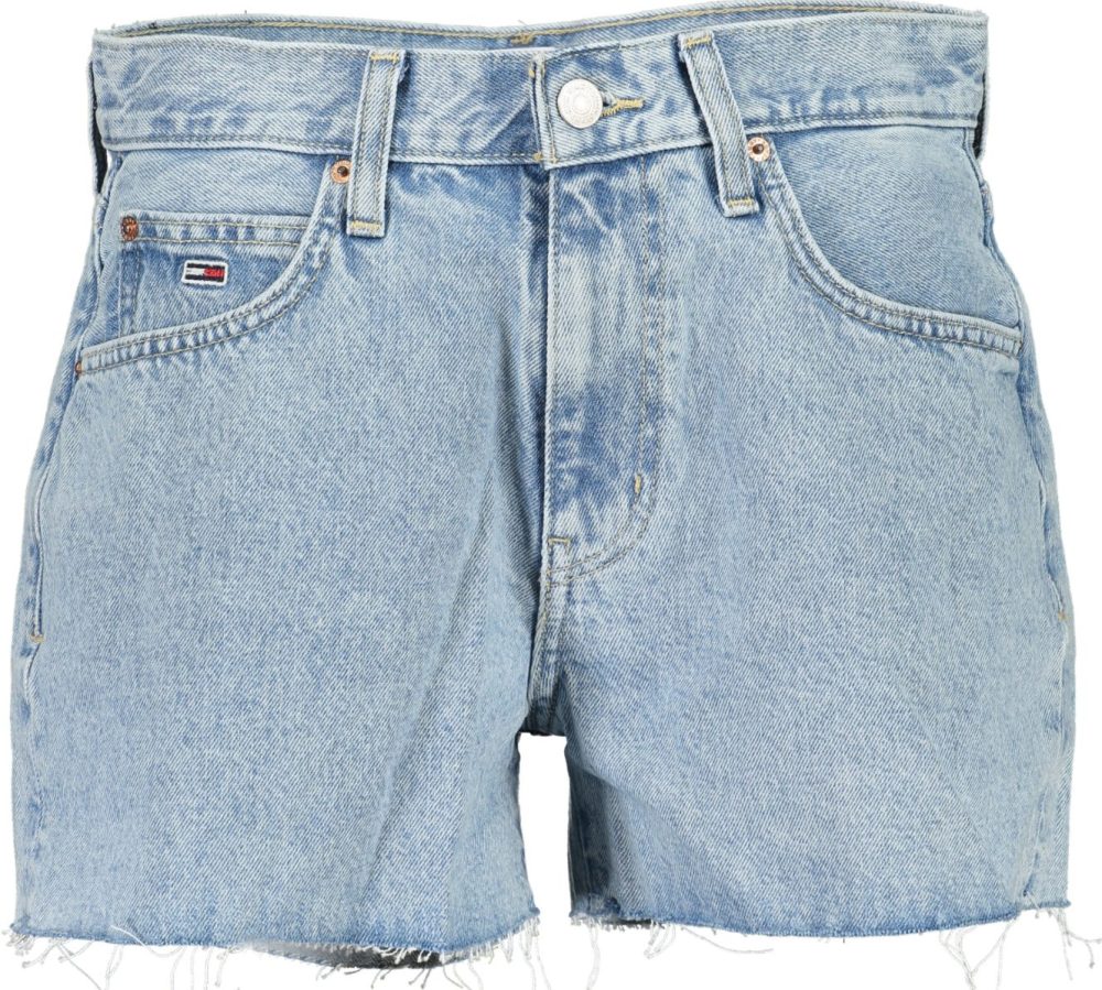 Calções de ganga com 5 bolsos, botão, zíper, logotipo.