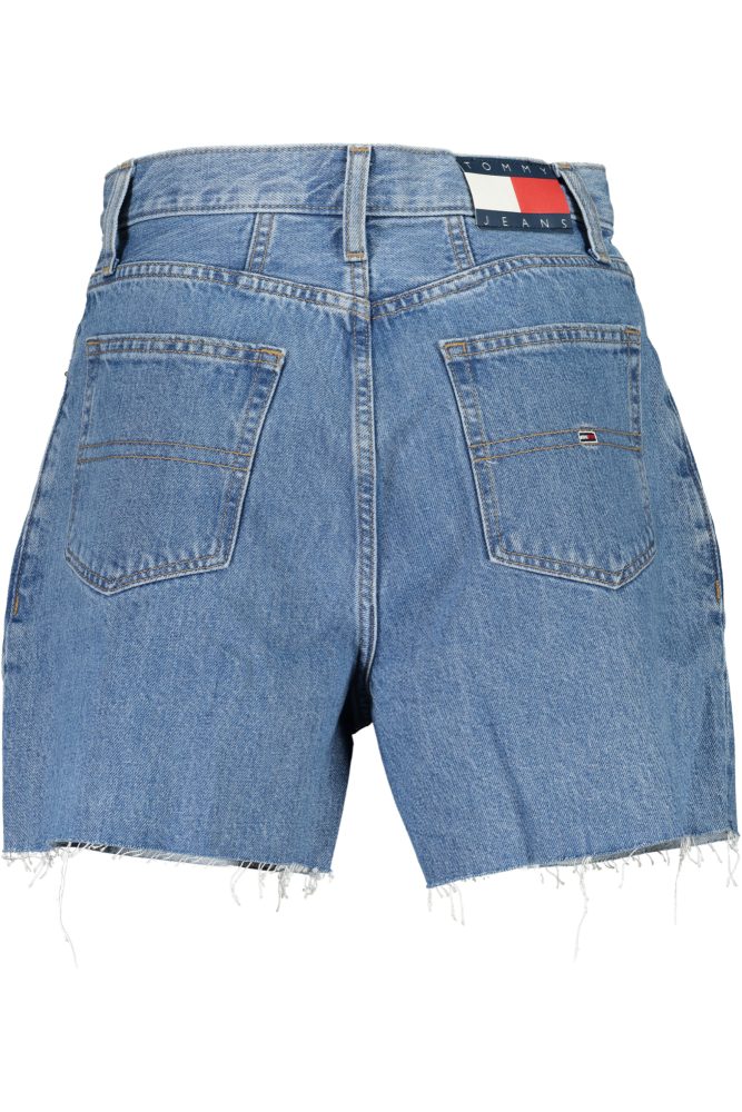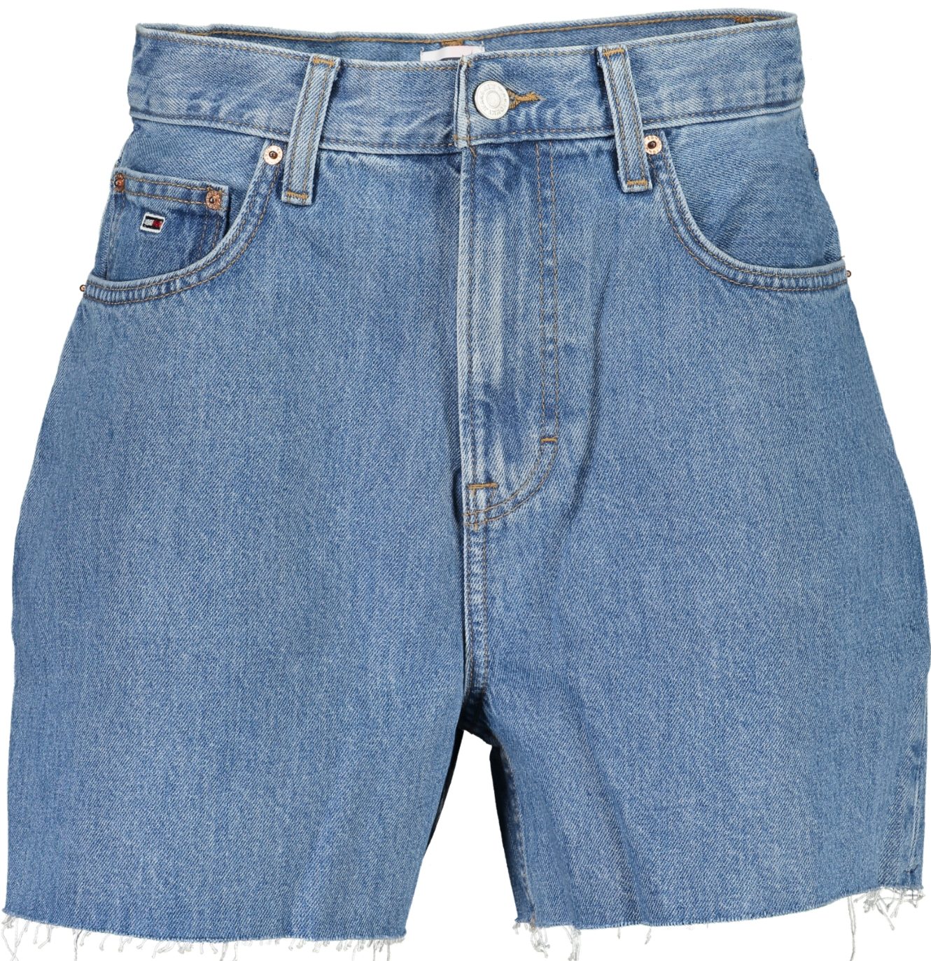 Calções de ganga com 5 bolsos, botão, zíper, logotipo.