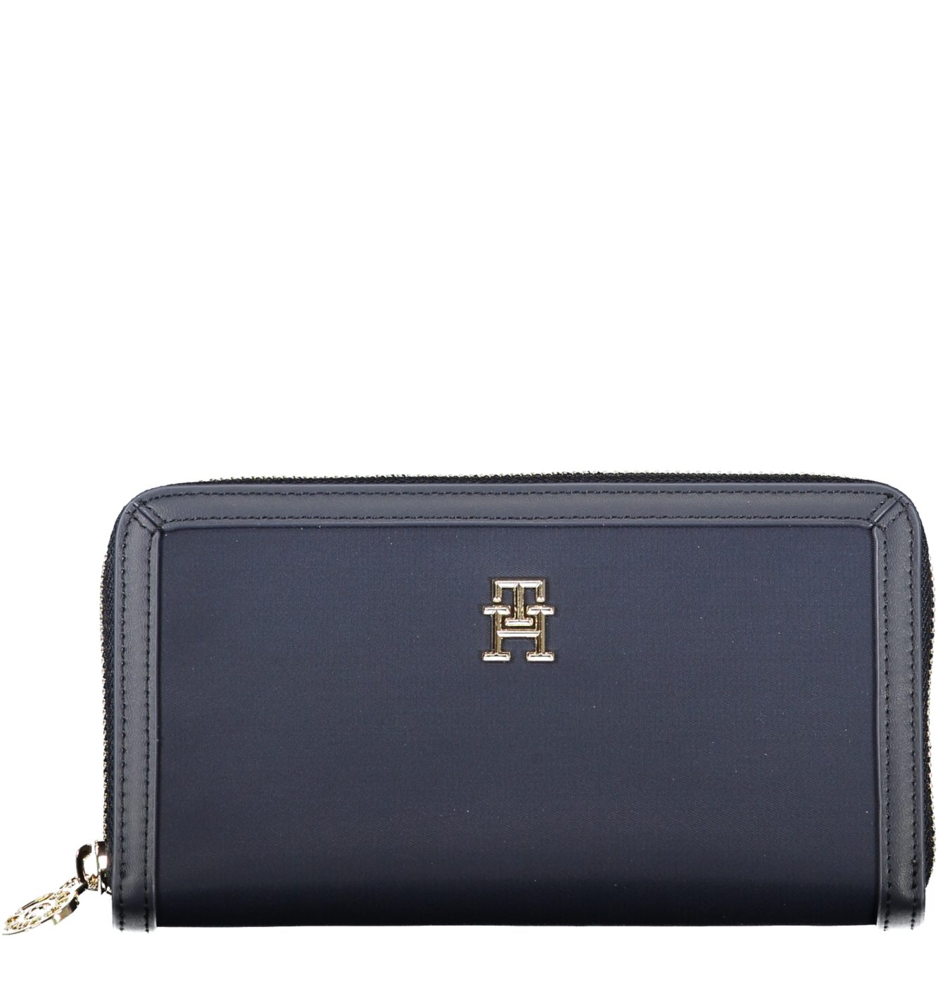 Carteira com 5 compartimentos, porta moedas, espaços duplos para cartões, fechamento zip, logotipo, poliéster reciclado