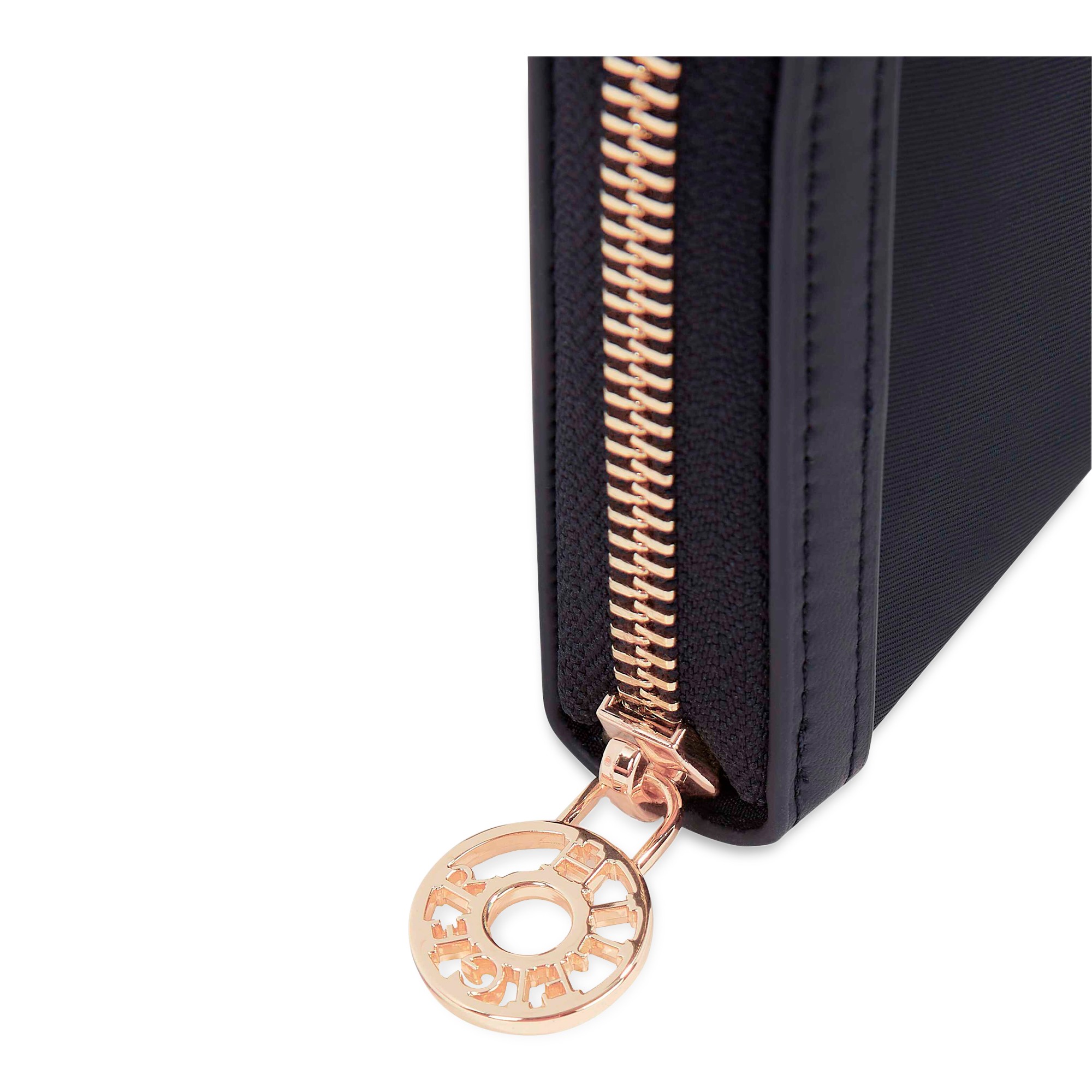 CARTEIRA COM 5 COMPARTIMENTOS, PORTA MOEDAS, ESPAÇOS DUPLOS PARA CARTÕES, FECHAMENTO ZIP, LOGOTIPO, POLIÉSTER RECICLADO