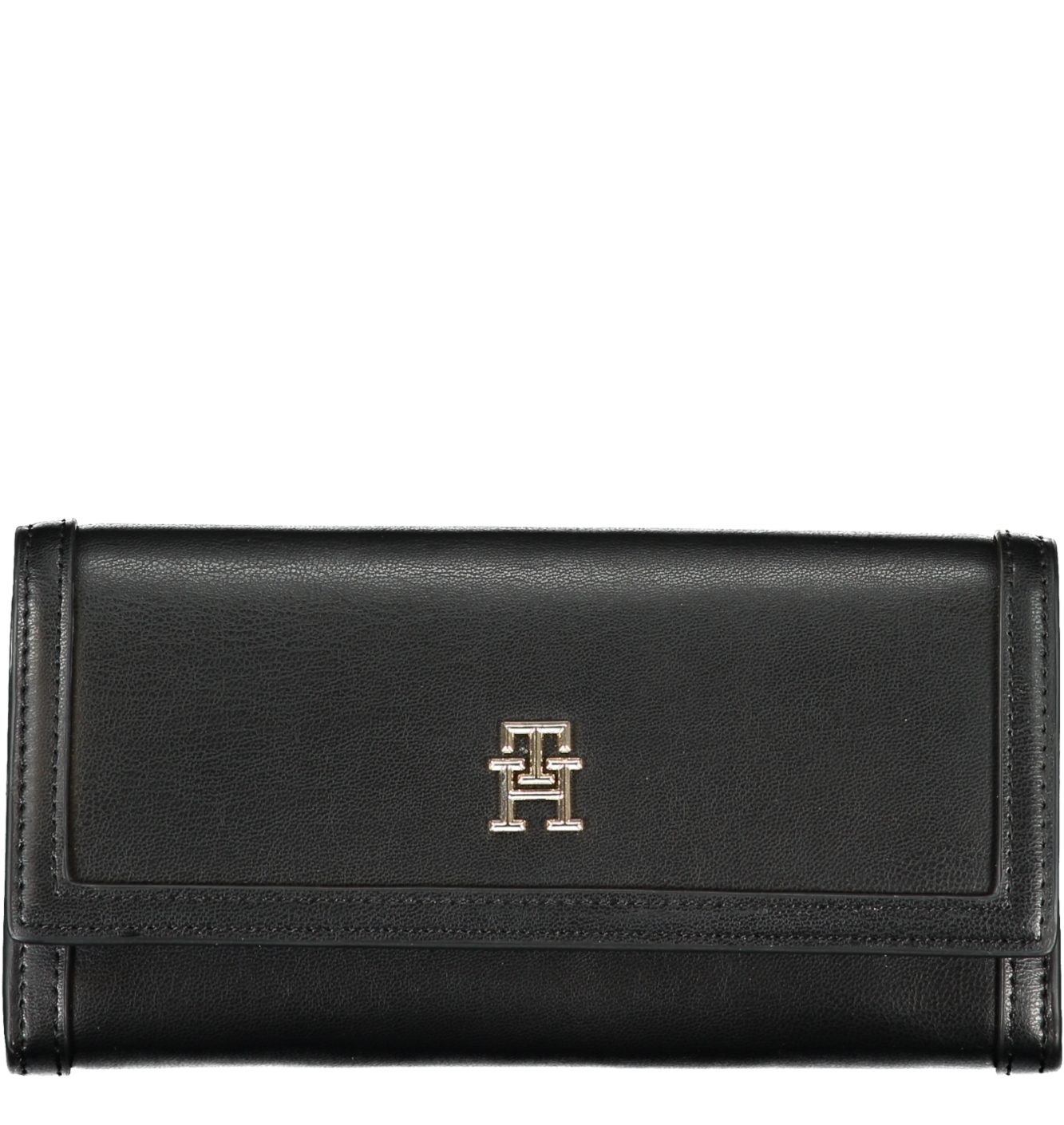 Carteira com 2 compartimentos, porta-moedas, espaços duplos para cartões, fechamento zip e automático, logotipo