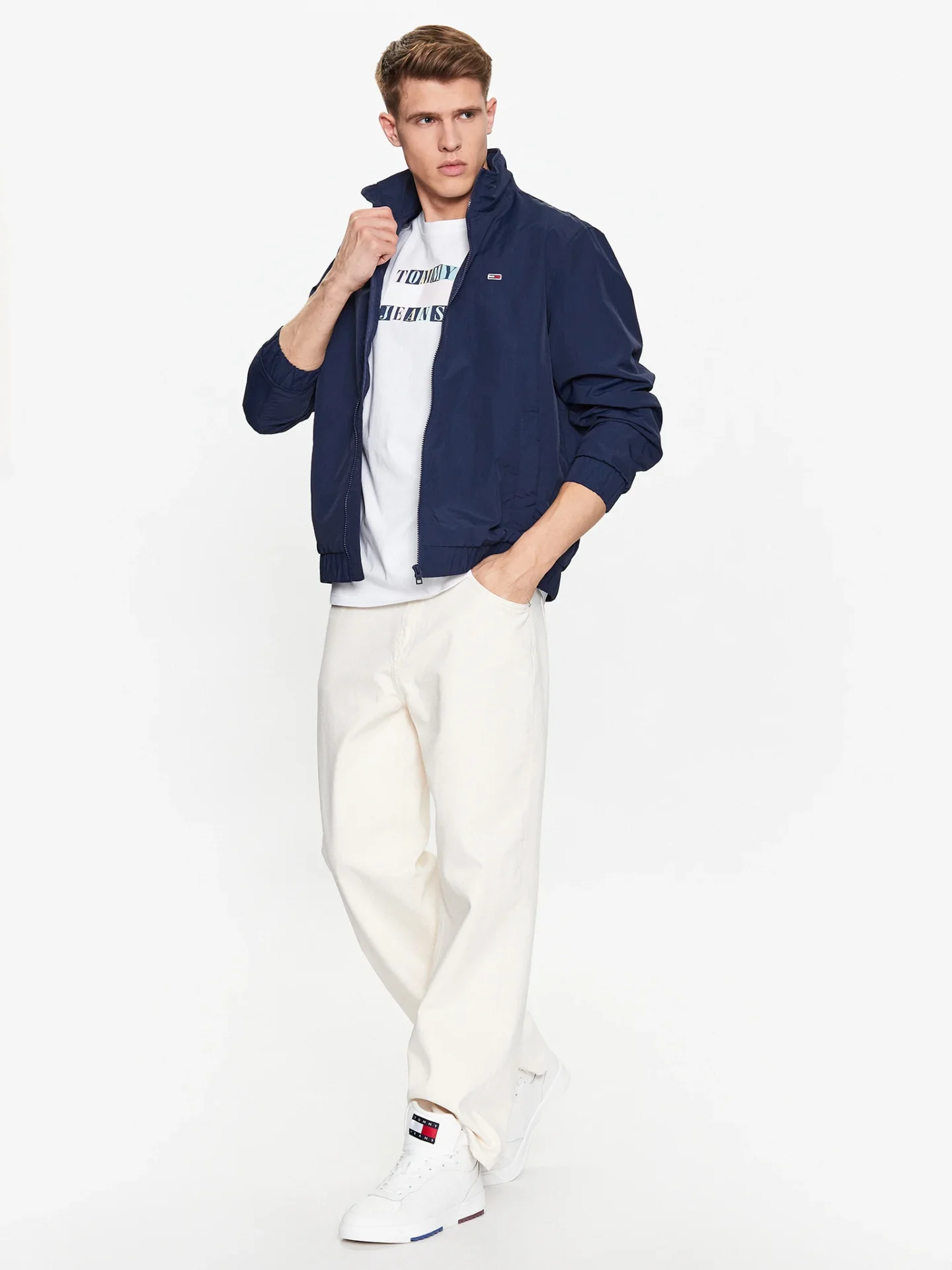 Casaco desportivo, 2 bolsos externos, 1 bolso interno, cintura elástica e punhos, fecho zíper, logótipo.