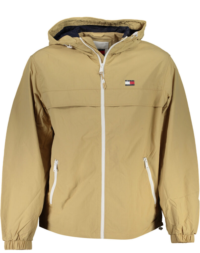Casaco desportivo de manga comprida com capuz, 2 bolsos, zíper, logótipo estampado e 95% nylon reciclado.
