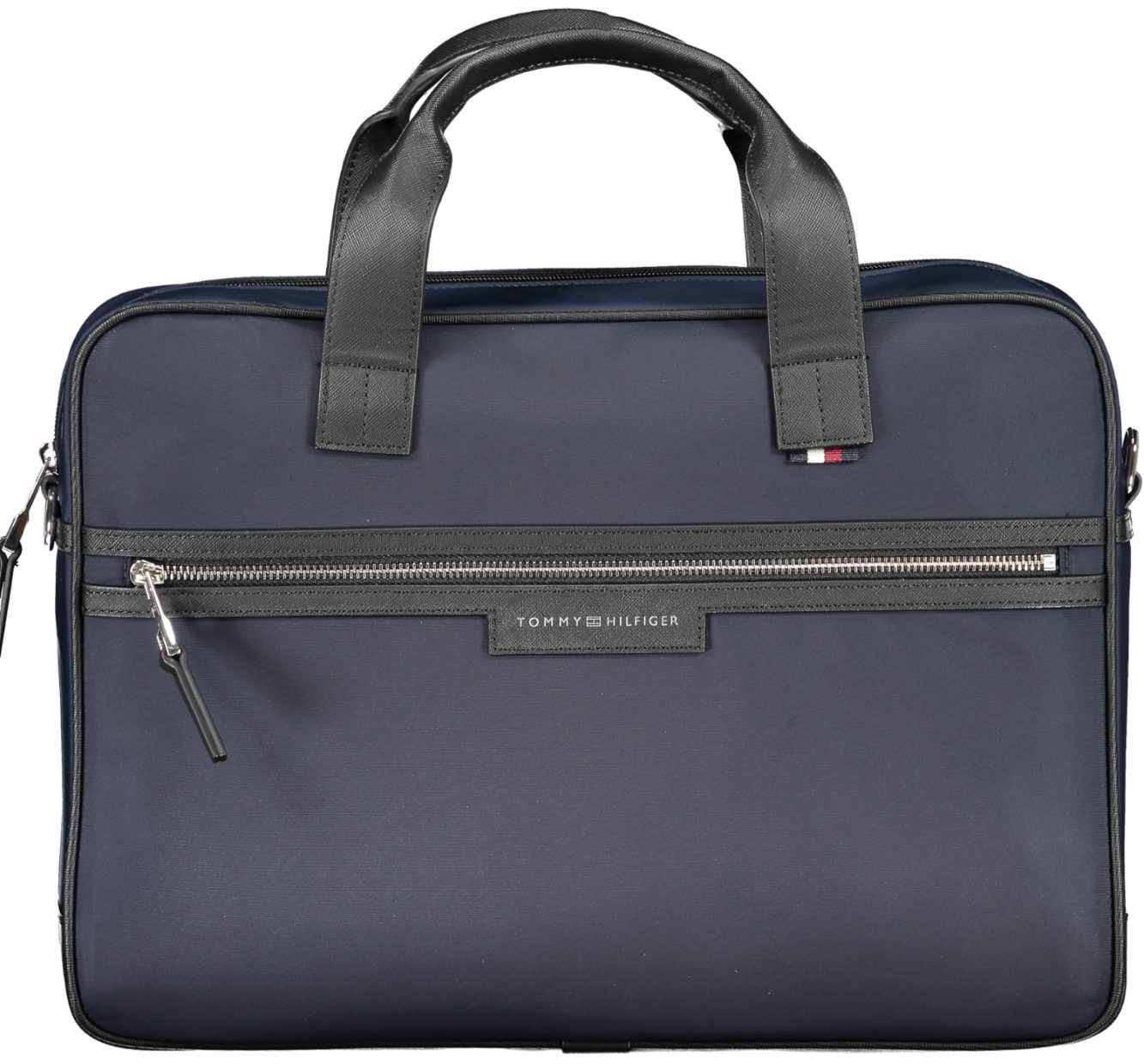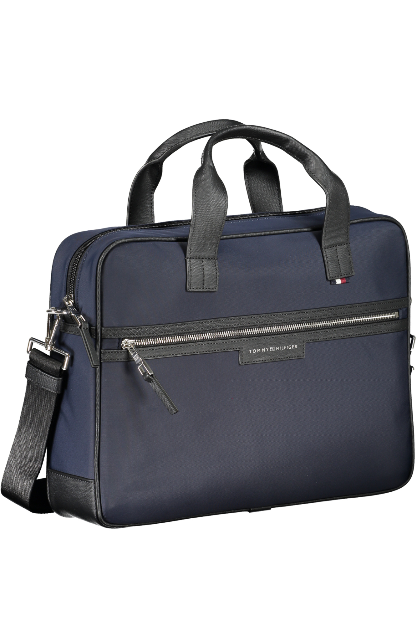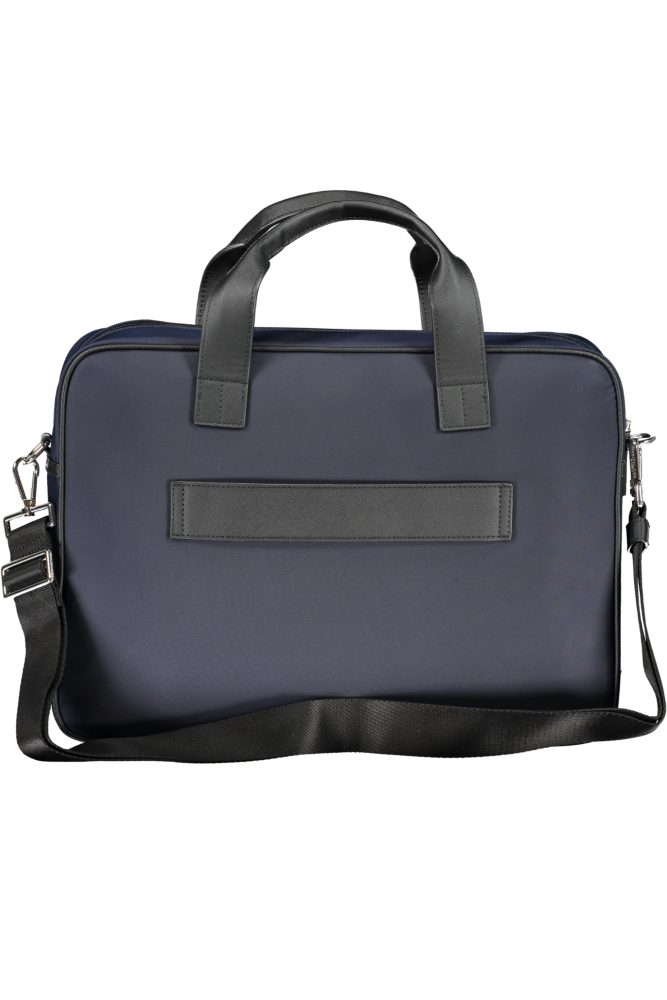 Mala com 2 alças, alça de ombro ajustável e removível, 1 bolso externo, 1 compartimento para portátil, 1 bolso interno, detalhes contrastantes, fecho zip e logótipo.