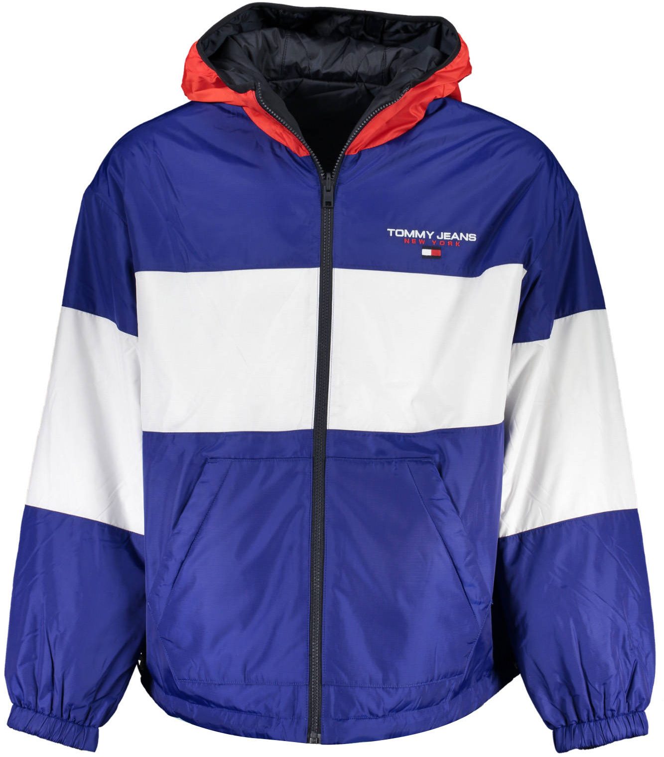 Casaco de manga comprida com carapuço, reversível (Azul/Branco/Vermelho ou Azul), cintura elástica com cordão, 2 bolsos externos, 2 bolsos internos, fecho e logótipo bordado.