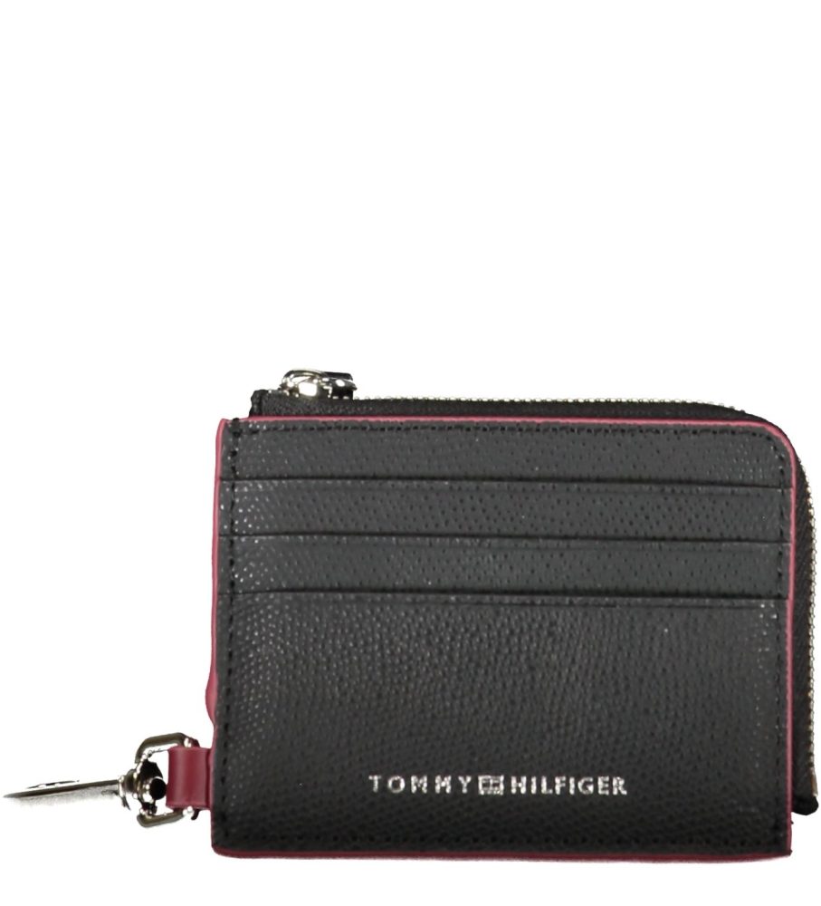 Porta-cartão, 1 bolso central, gancho, fechamento zip, logotipo