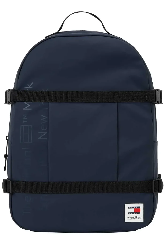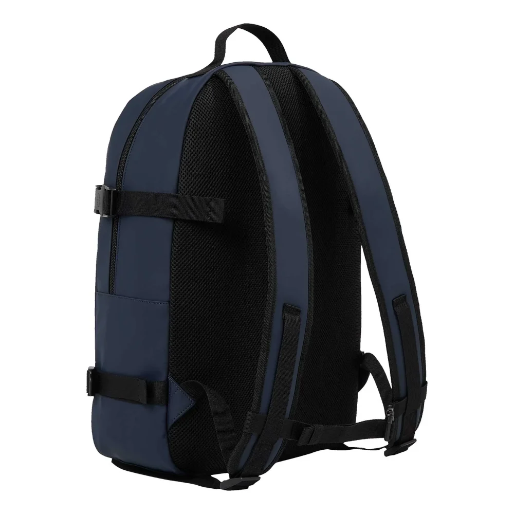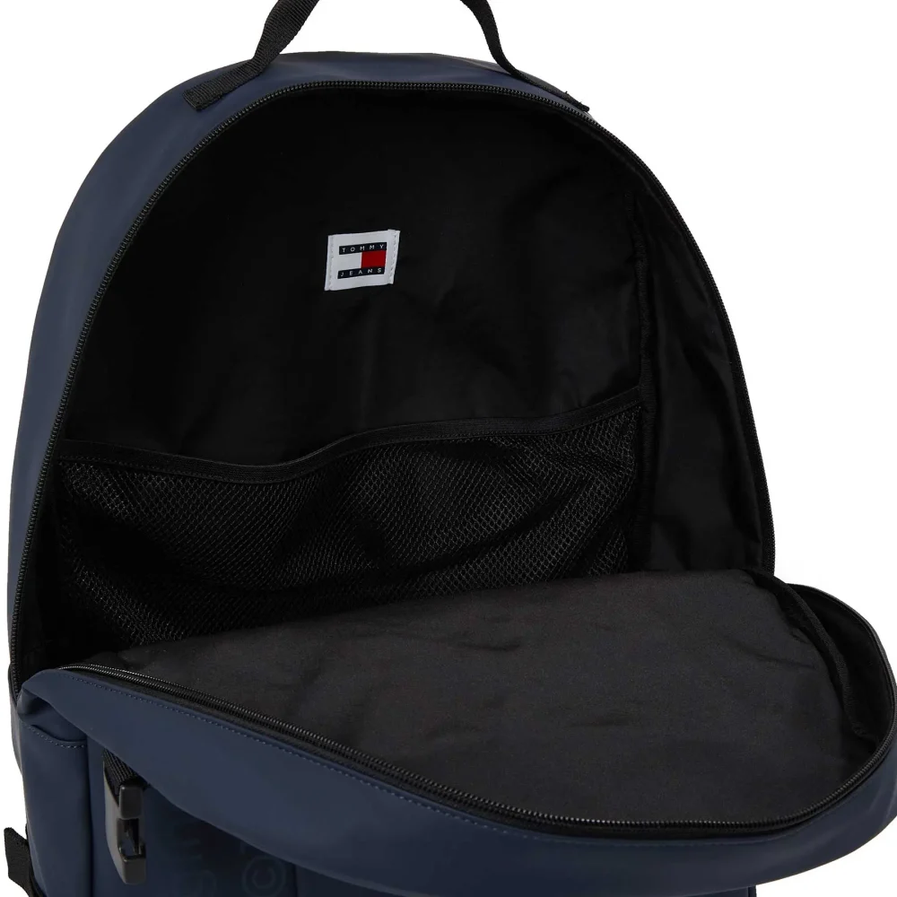 Mochila com 1 pega, 2 alças ajustáveis, 1 bolso externo, 1 compartimento interno, fecho, detalhes contrastantes e logótipo.
