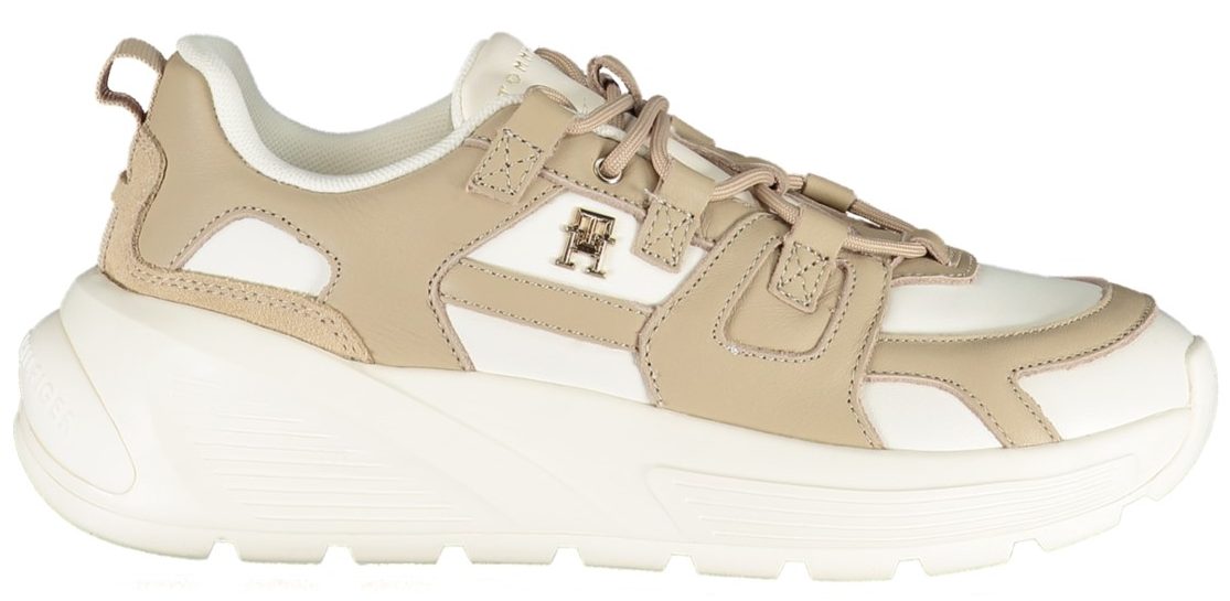 Calçado desportivo com atacadores, detalhes de contraste, logótipo.