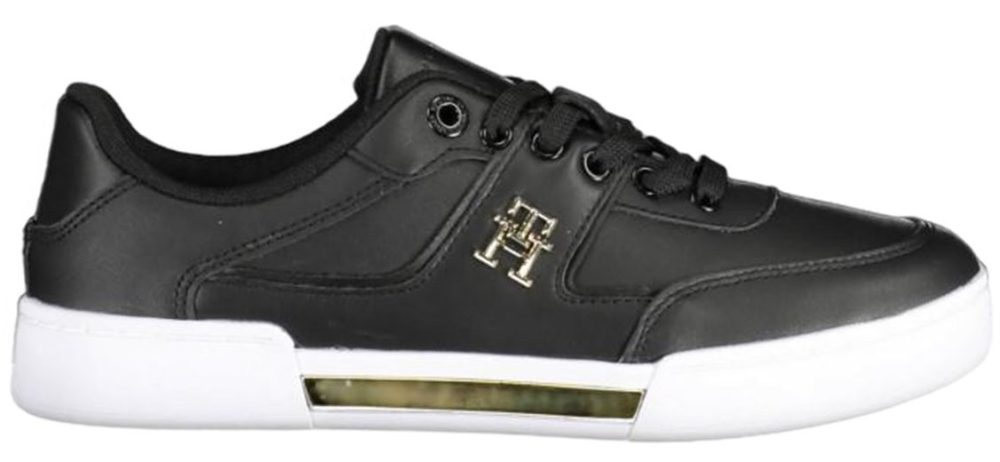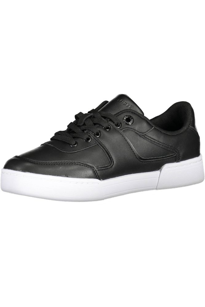 Sapatilhas desportivas com detalhes contrastantes e logotipo.