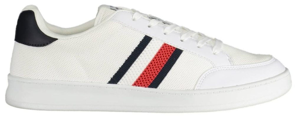 Calçado desportivo com atacadores, detalhes contrastantes, logótipo.