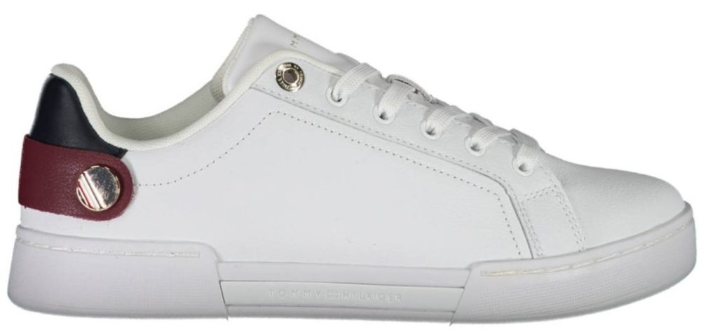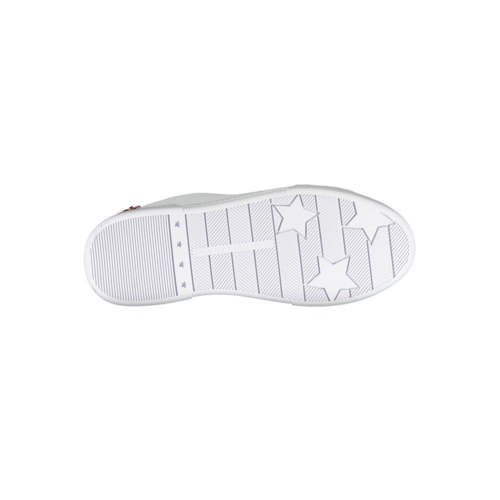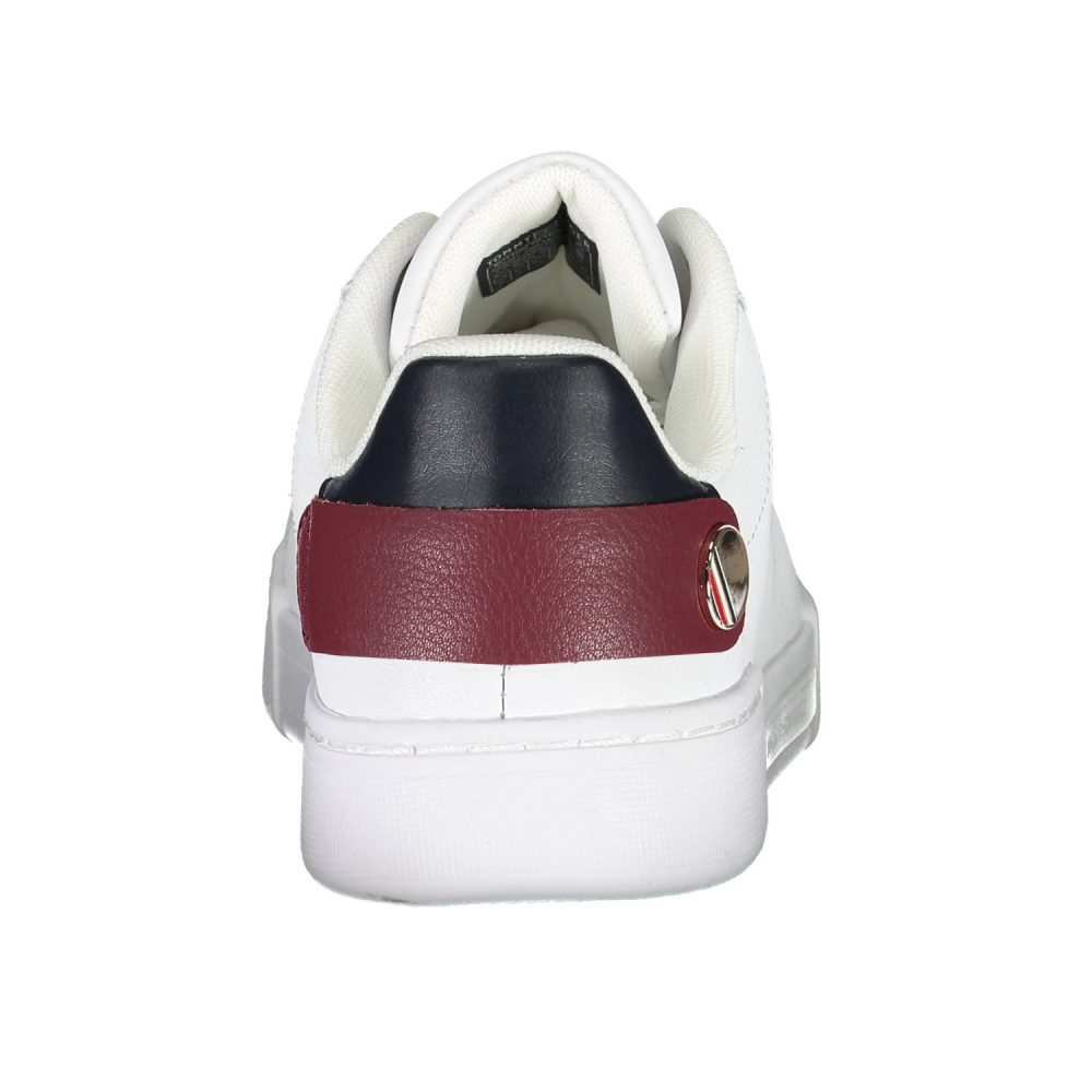 Calçado desportivo com atacadores, detalhes contrastantes, logótipo.