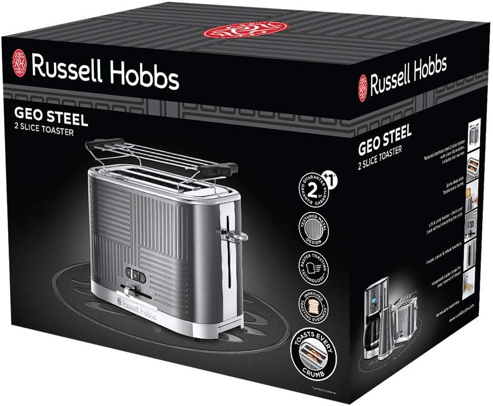 - Torradeira para duas fatias de design metálico de aço inoxidável com relevo