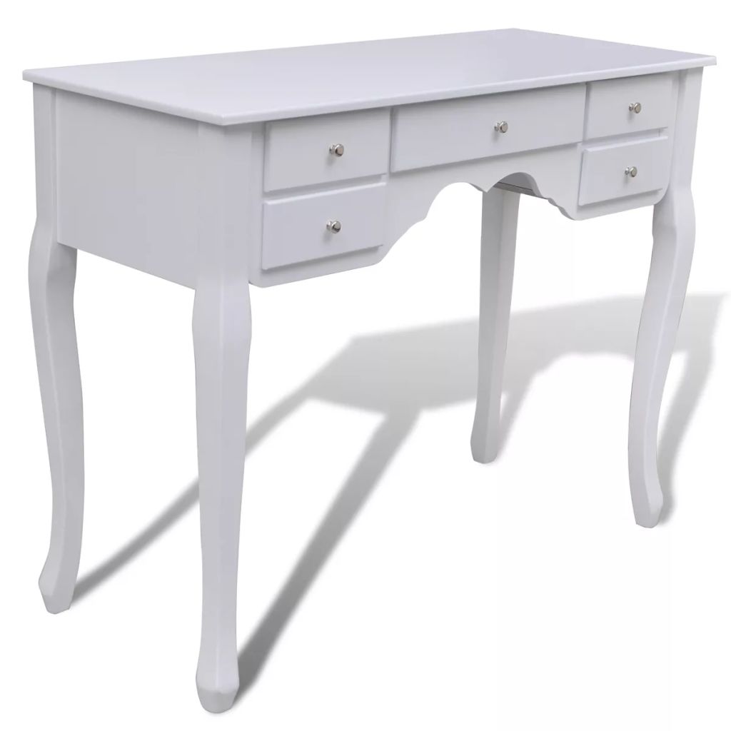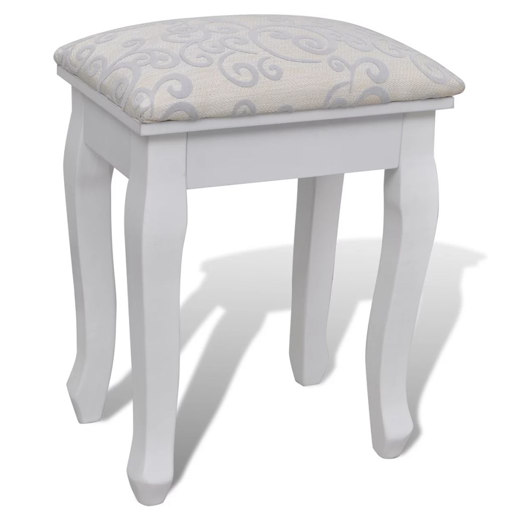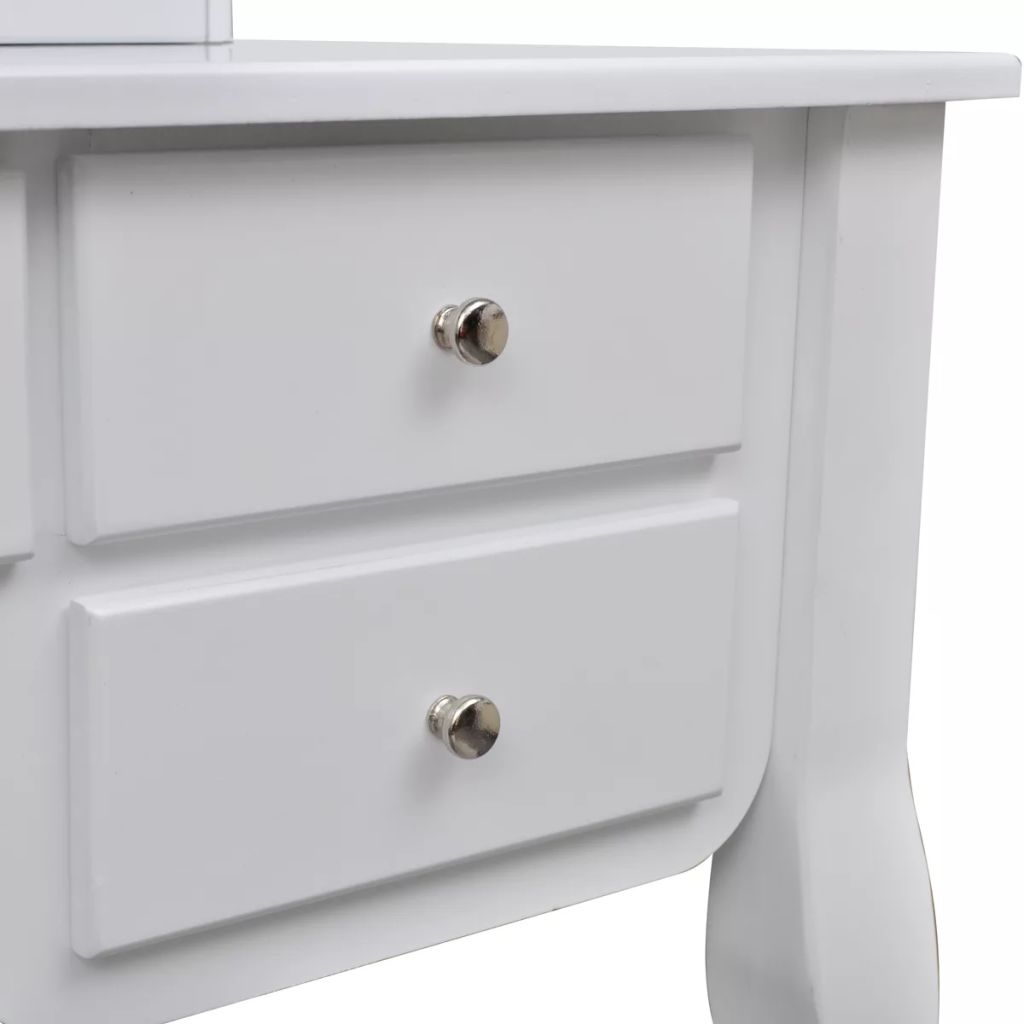 Este encantador toucador e banco XXL são feitos de madeira de pinho de alta qualidade. O seu estilo vitoriano com um acabamento branco limpo adicionará um toque de elegância e beleza ao seu boudoir ou vestiário. O acabamento requintado é outra característica marcante desta conjunto de toucador e banco.