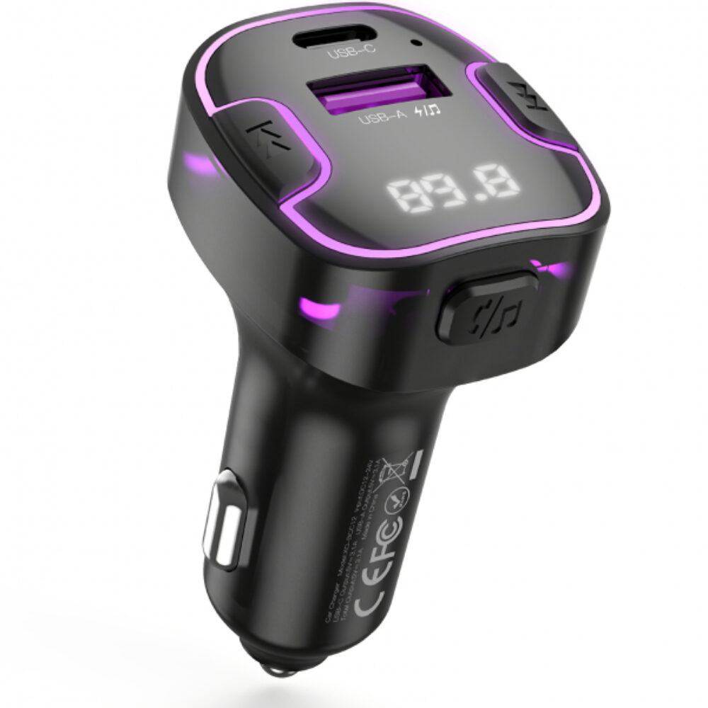 Transmissor FM Bluetooth e carregador para automóvel XO DESIGN BCC12, 1 x USB-A - 1 x USB-C, preto