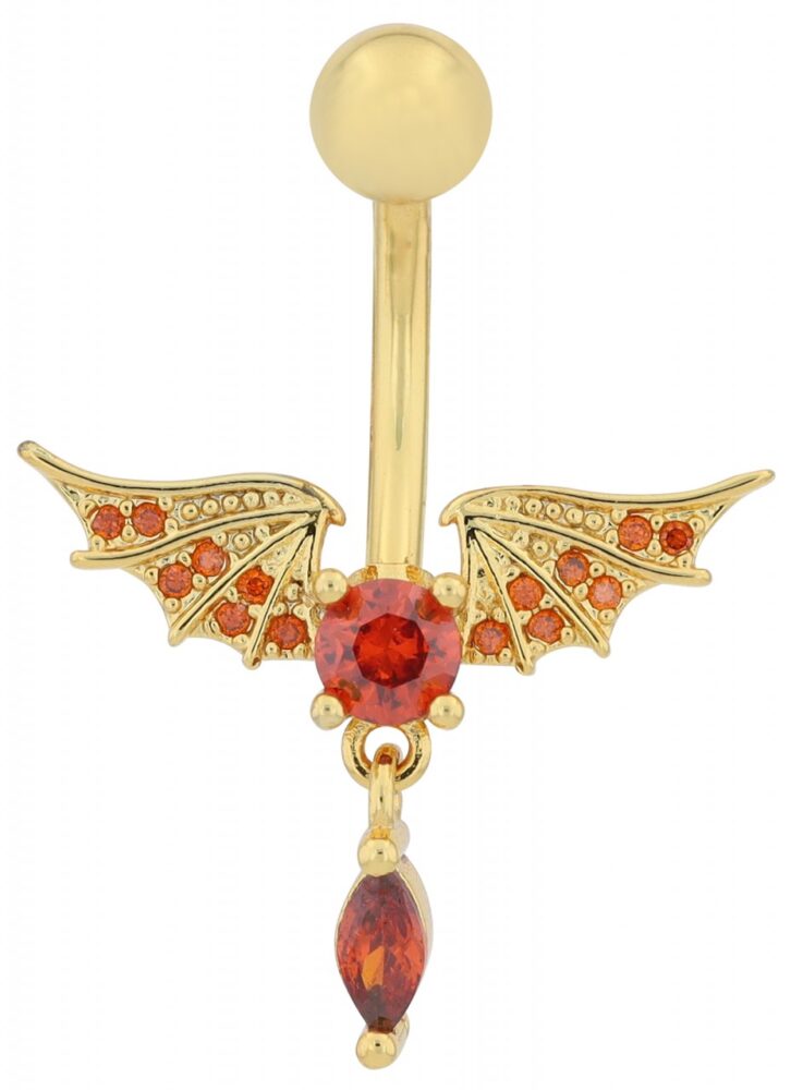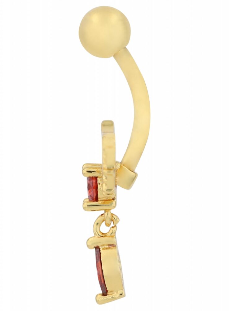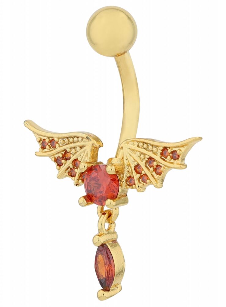 Este piercing no umbigo em formato de asa é uma combinação de estética, qualidade e conforto. A brilhante pedra de zircônia vermelha inserida no motivo principal cria um contraste de cores emocionante. Outro destaque é o pingente móvel com uma zircônia vermelha adicional em formato de navette, que balança suavemente a cada movimento e reflete a luz de forma impressionante. Disponível em duas variações de cor, este piercing se adapta perfeitamente a estilos individuais – sejam eles elegantes, divertidos ou modernos. O piercing tem um comprimento total de 30 mm, um comprimento de barra de 11 mm e uma espessura de barra de 1,8 mm. Essas dimensões dão ao piercing uma presença sutil, mas perceptível.