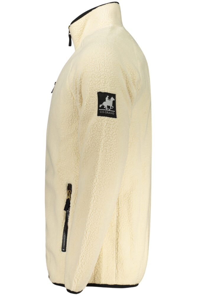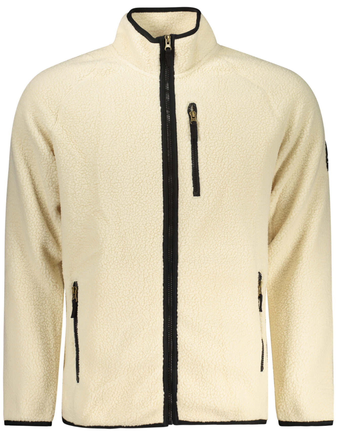 Casaco de manga comprida com efeito ovelha, zíper, bolsos, aplique e logotipo