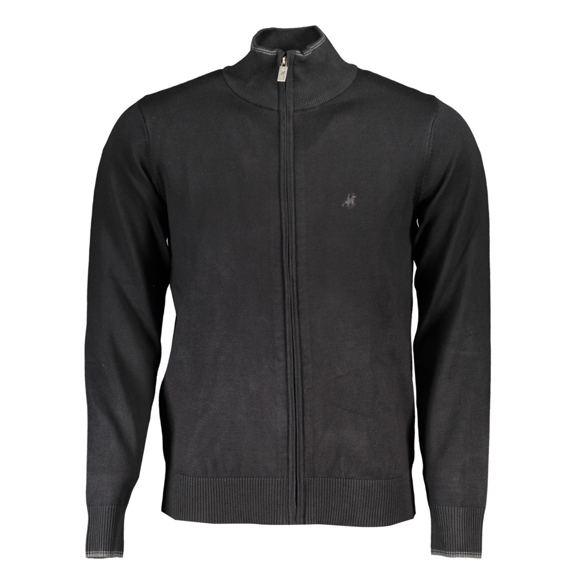 Cardigan de manga comprida, detalhes contrastantes, fecho zíper, bordado, logótipo.