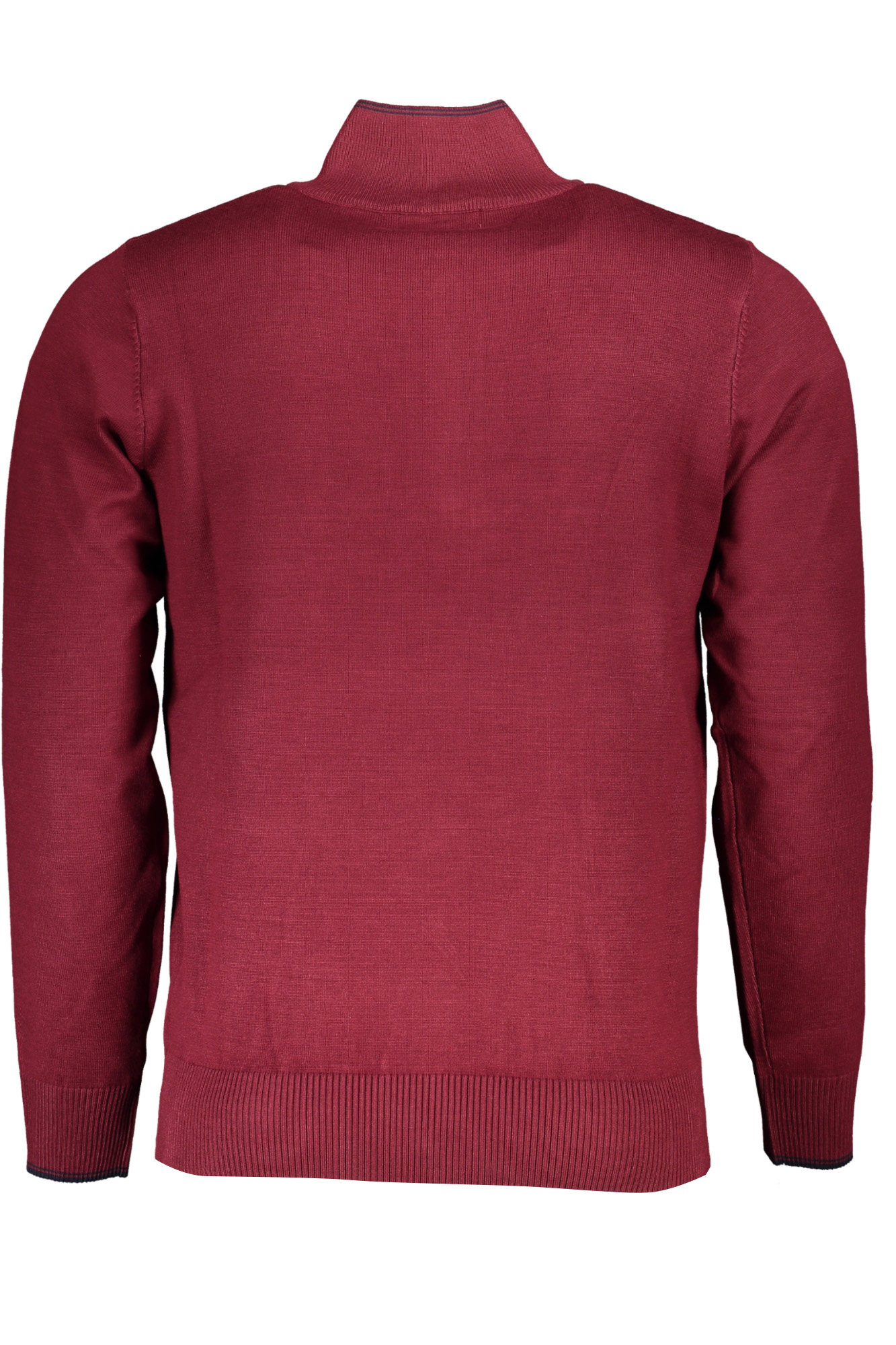 Suéter de manga comprida, meio zíper, detalhes contrastantes, bordado, logótipo.