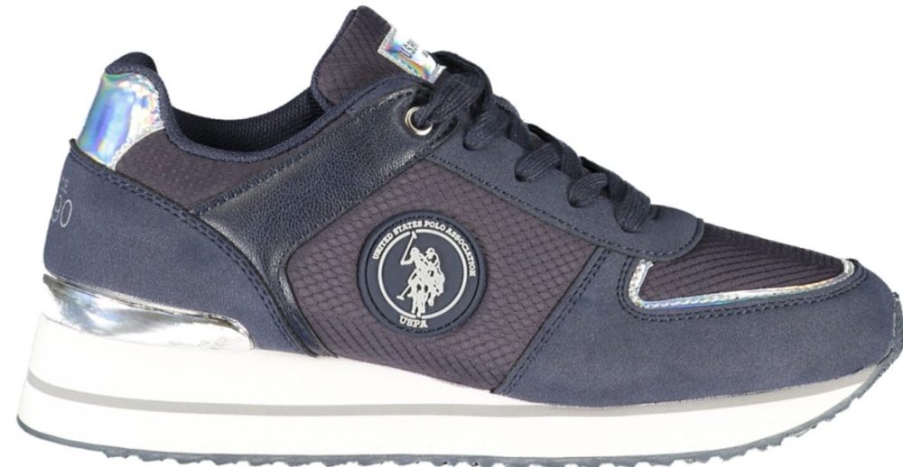 Calçado desportivo com atacadores, detalhes de contraste, estampa, logótipo.