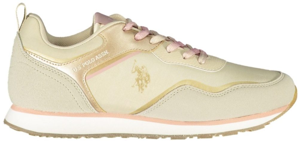 Calçado desportivo com atacadores, detalhes de contraste, estampa, logótipo.