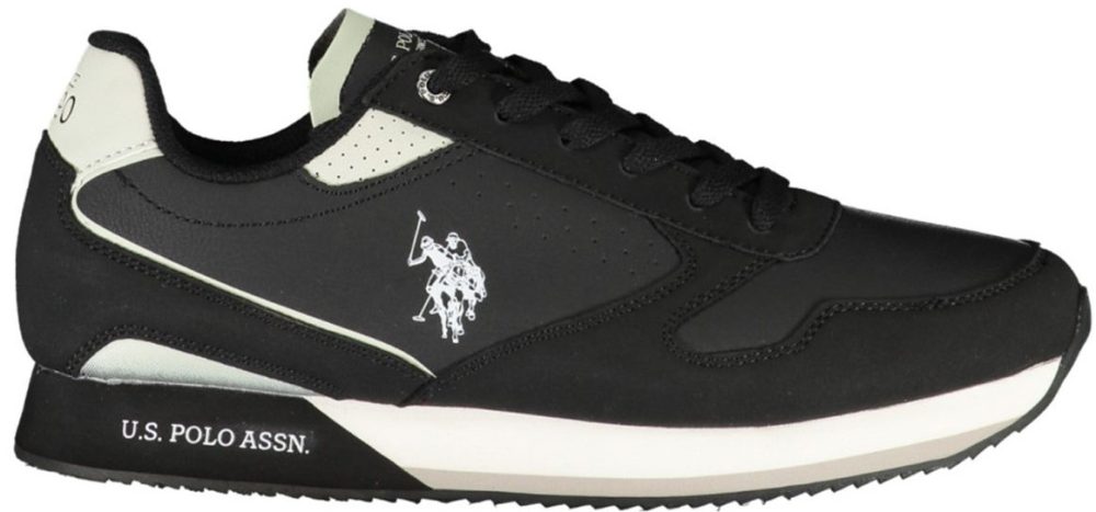 Calçado desportivo com atacadores, detalhes de contraste, estampa, logótipo.