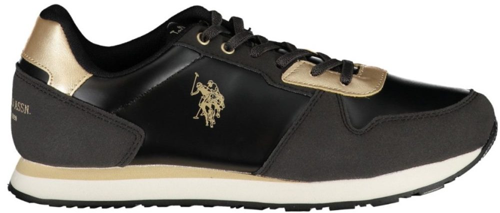 Calçado desportivo com atacadores, detalhes de contraste, estampa, logótipo.