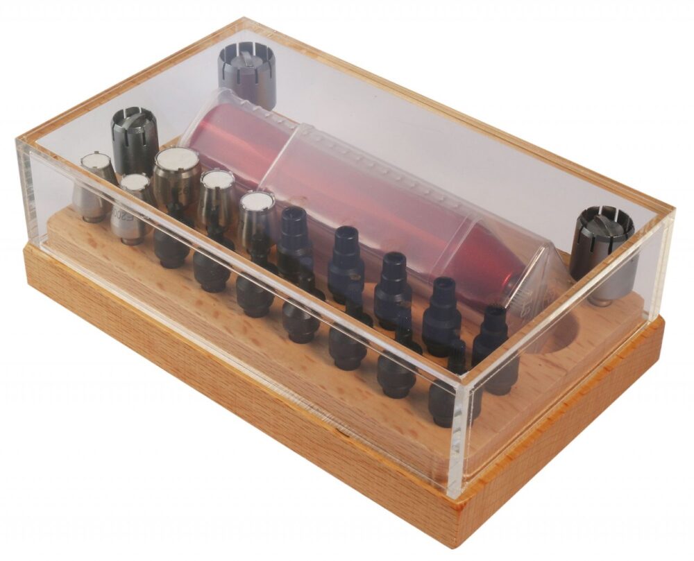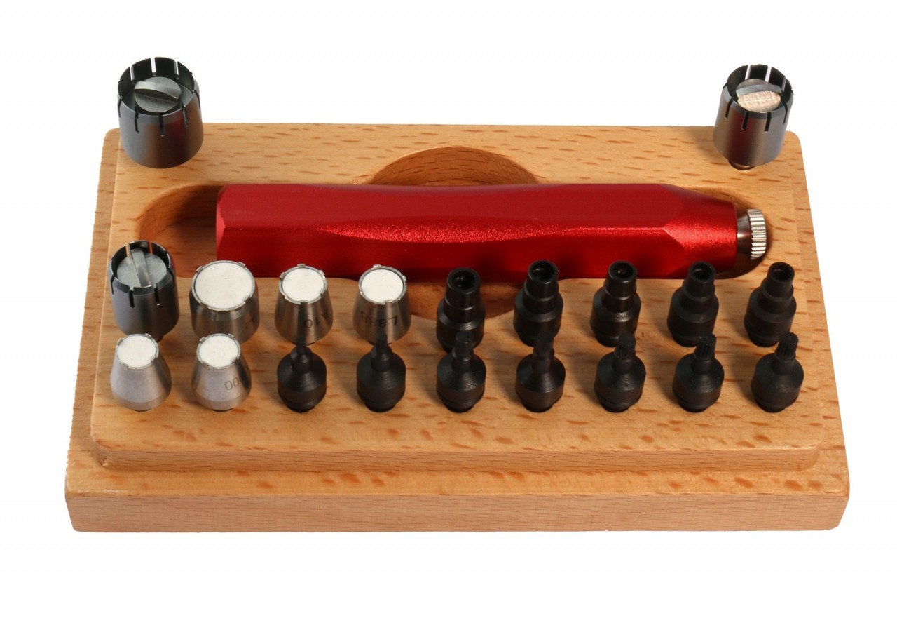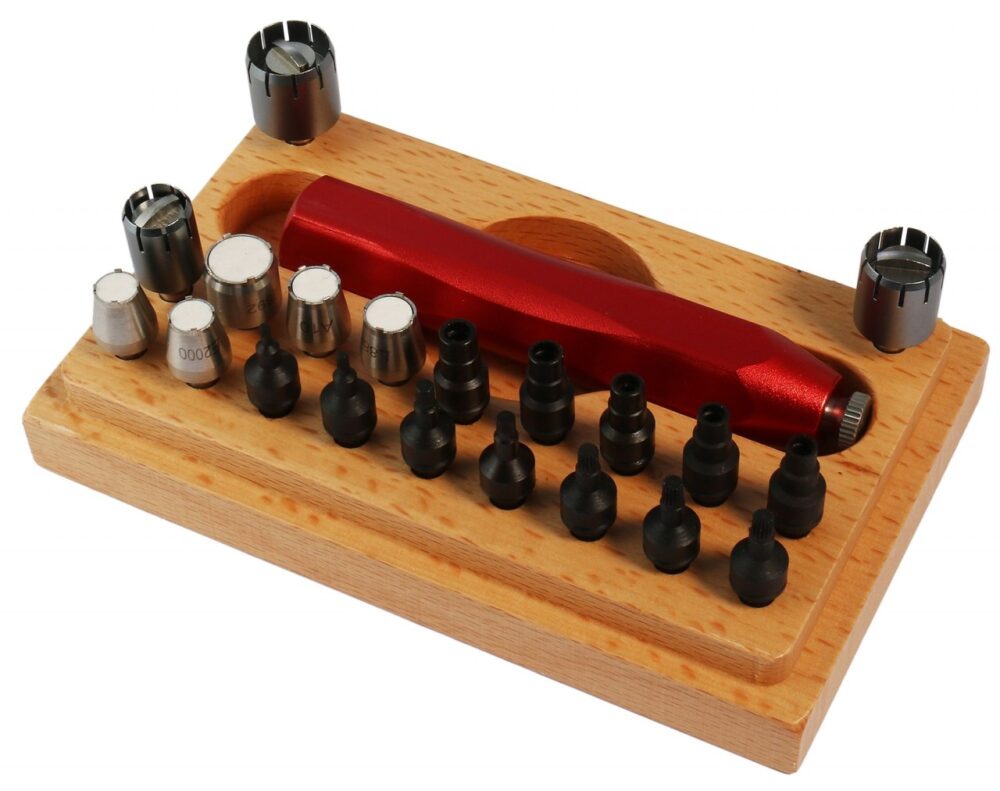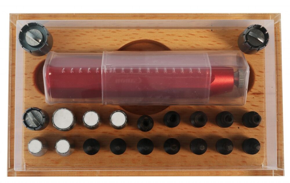 Este conjunto de ferramentas inclui uma peça de mão e todos os acessórios importantes para reparar um relógio. Este conjunto é indispensável para relojoeiros que lidam diariamente com a manutenção e reparação de relógios. Graças à sua versatilidade, este conjunto é a escolha perfeita para o uso diário. A ferramenta oferece muitos usos possíveis. Estão incluídos acessórios para remover e inserir o tubo em uma coroa aparafusada. Com a ajuda dos acessórios apropriados, o rotor pode ser fixado e liberado em um mecanismo automático. A ferramenta também pode ser usada para fixar e desmontar coroas. Os compartimentos da bateria também podem ser abertos e fechados.
