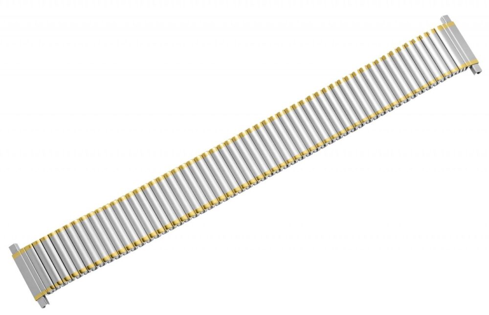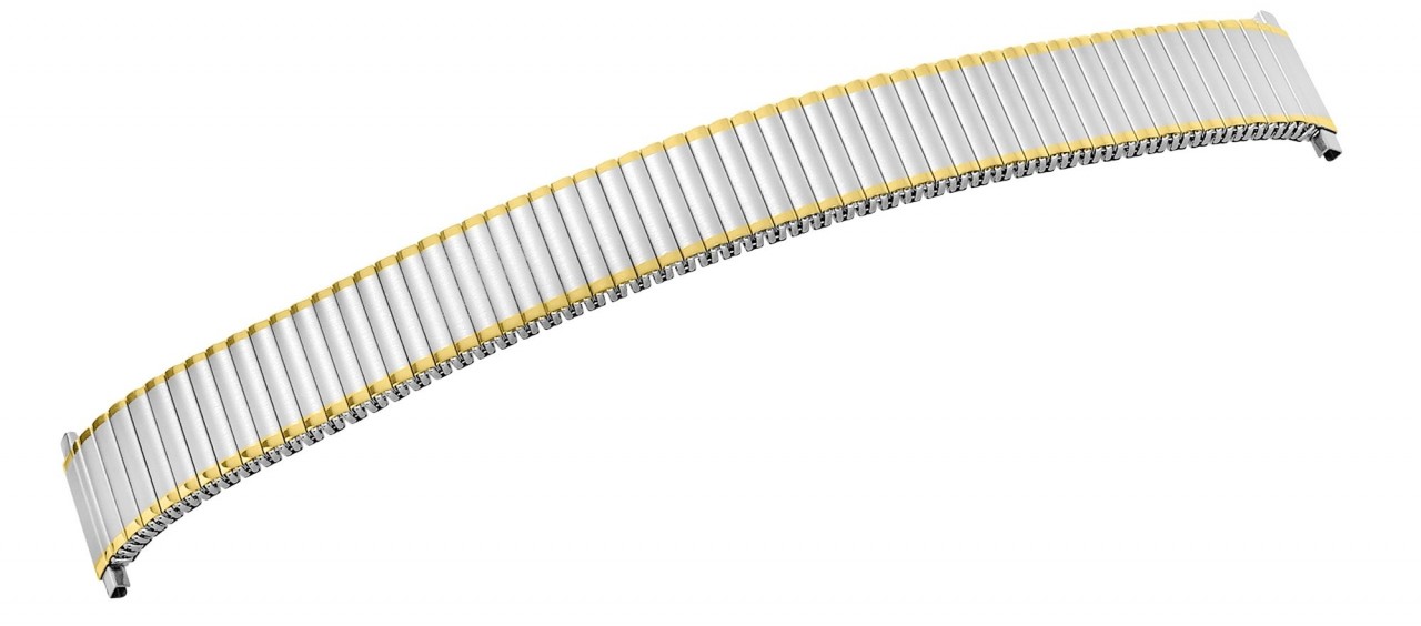 O design unissexo da bracelete combina habilmente estruturas de superfície curvas polidas e mate num sofisticado tom prateado com acentos dourados, dando à bracelete um aspeto intemporal e elegante que irá agradar tanto a homens como a mulheres e que complementa de forma ideal tanto os modelos de relógios clássicos como os modernos.